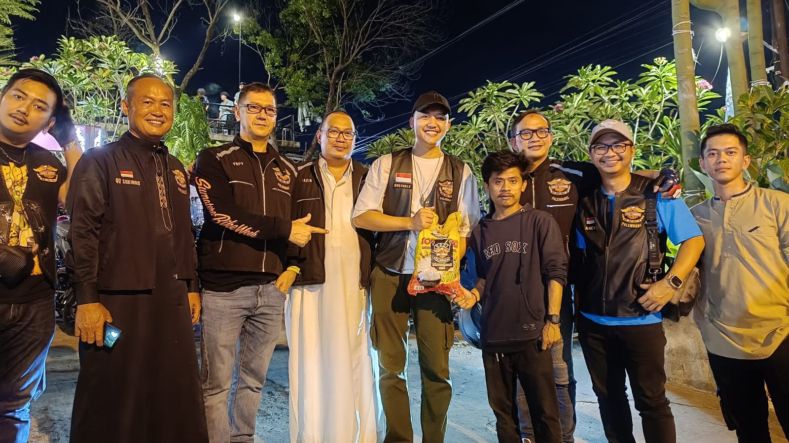 “Gak nyangka aja Mas, malam-malam begini saya justru dapat bantuan beras dari komunitas Harley. Saya sangat berterima kasih buat HDCI Palembang, paket ini sangat berarti buat keluarga saya di rumah,” ujar Ridwan dengan mata berkaca-kaca.