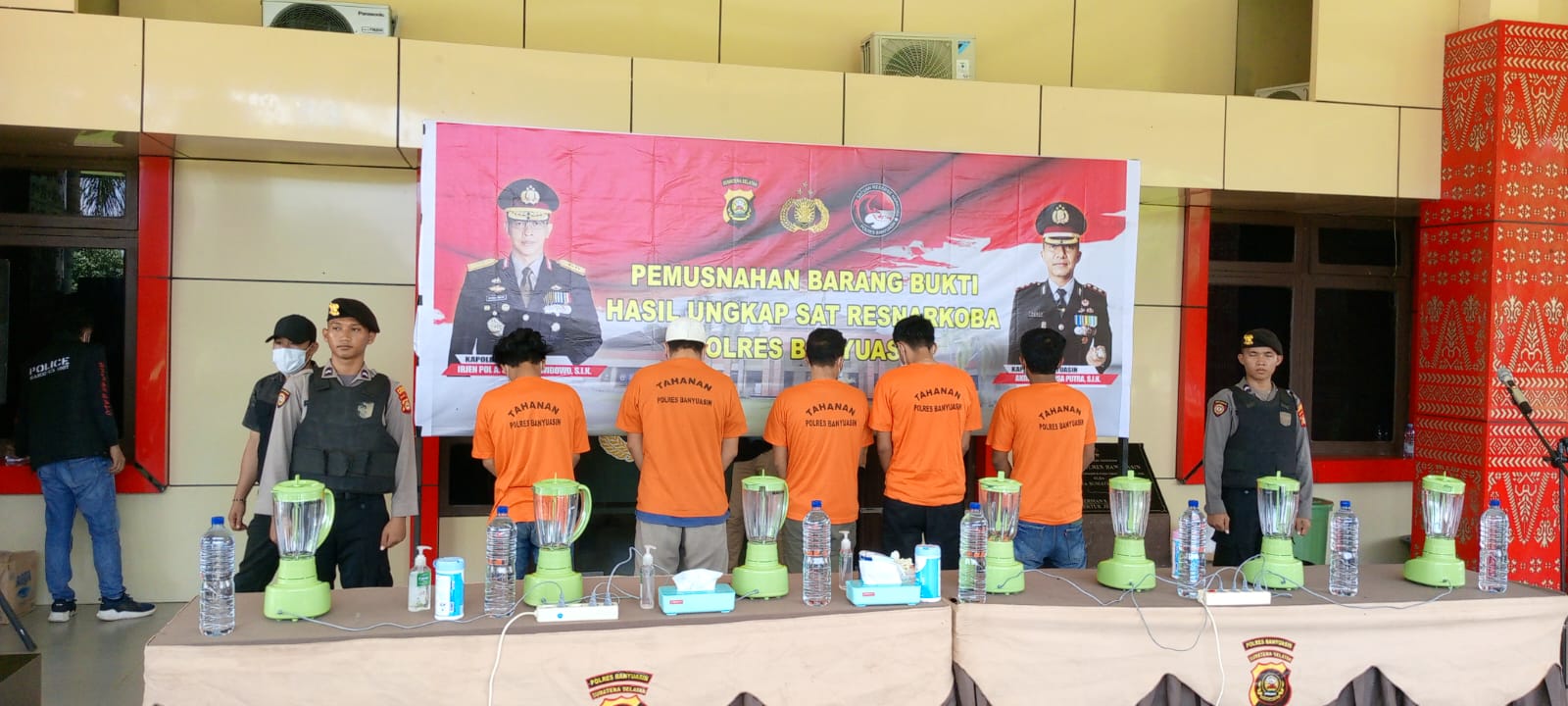 “Pemusnahan Barang Bukti Narkotika hari ini pada tanggal 6 Februari 2024 hasil dari Penangkapan dengan Laporan Polisi sebanyak 3 dan sebanyak 5 tersangka yang berhasil diamankan,” Jelas Kapolres