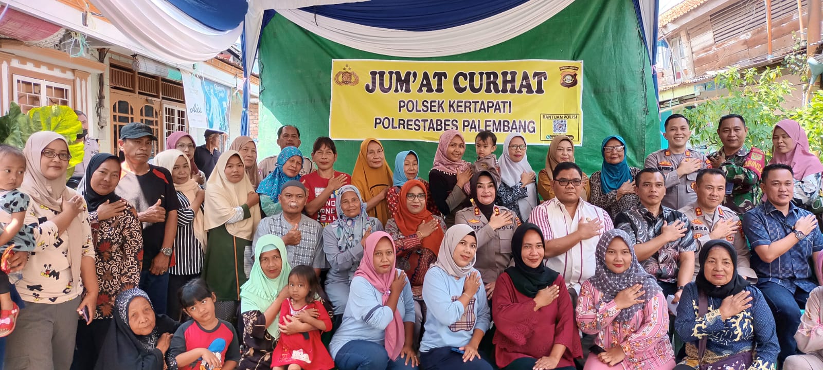Jumat Curhat kali melakukan kunjungan dan diskusi bersama masyarakat dengan Pejabat Utama Polda Sumsel diantaranya Wadir Intelkam AKBP Dwi mulyanto SIK Waka Labfor AKBP M.F.Hidayat S.Si,MT dan Kapolrestabes Palembang Kombes Pol Haryo Sugihartono diwakili Waka polrestabes AKBP Andes Purwati SE MM di Jln Ki Marogan lr Ichwani RT 25 kelurahan Kertapati Palembang , Jumat 1 September 2023.