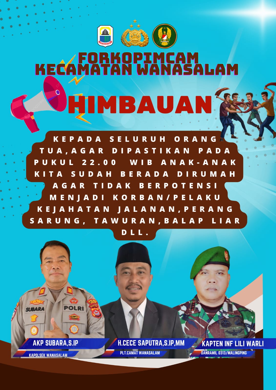 Himbauan yang sangat strategis ini tidak lahir secara sepihak, melainkan merupakan hasil dari kolaborasi dan pemikiran bersama antara beberapa pihak berwenang yang memiliki peran penting dalam menjaga keamanan dan ketertiban di Kecamatan Wanasalam. Gagasan himbauan ini secara langsung diajukan oleh Bapak AKP Subara, S.IP, yang menjabat sebagai Kepala Kepolisian Sektor (Kapolsek) Wanasalam, yang telah lama memperhatikan dinamika keamanan malam hari di wilayahnya dan melihat bahwa banyak kasus yang melibatkan anak muda terjadi setelah pukul 22.00 WIB.