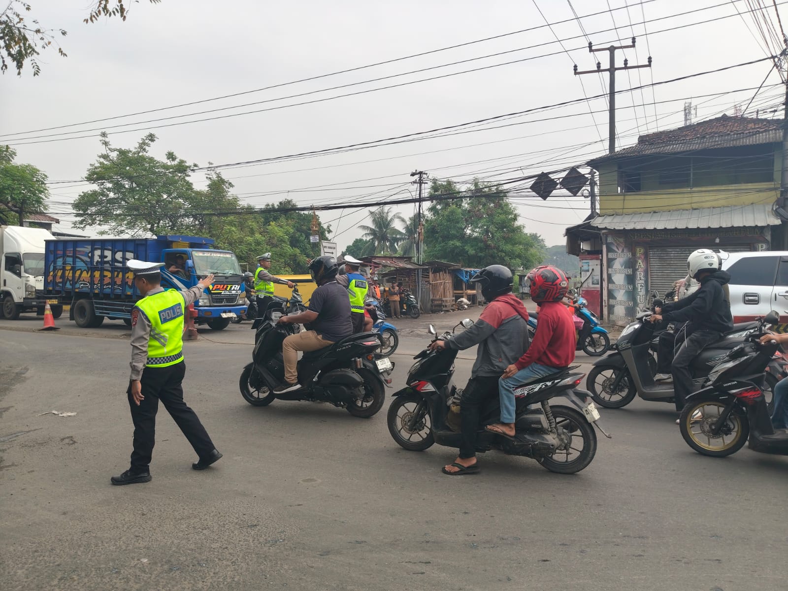 Pengaturan lalu lintas oleh jajaran kepolisian lantas Polsek kragilan dan satlantas polres Serang Polda Banten, Selasa (28/4/2026) Kegiatan gatur dilaksanakan setiap pagi hari mulai pukul 06.00 Wib hingga menjelang jam masuk sekolah dan jam masuk kerja pabrik dan perkantoran.