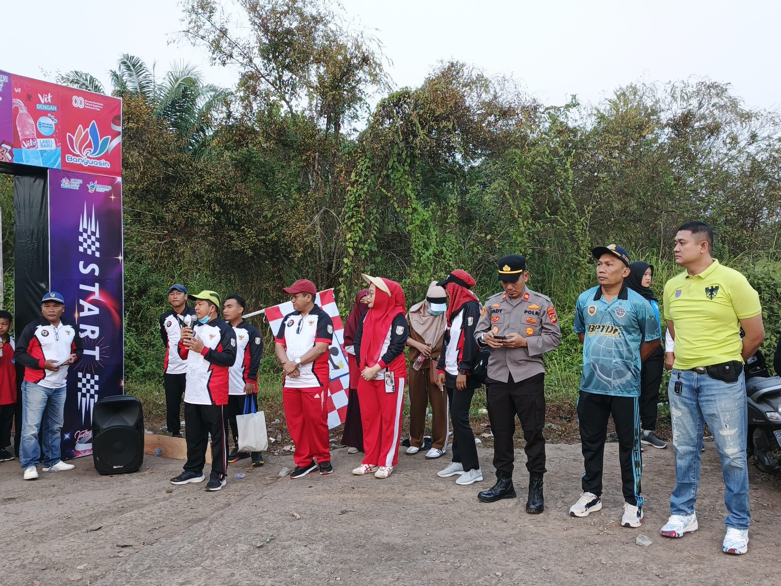 Kegiatan dimulai pukul 06.30 WIB dengan apel pengamanan yang dipimpin Kapolsek Betung, Iptu Riady Sasongko, S.H., diikuti oleh personel Polsek, Danramil, Babinsa, serta panitia. Jalan santai dibuka secara resmi oleh Camat Betung, Dino Suryadinata, S.H., dengan rute start dari Terminal Betung menuju finish di Lapangan Perjuangan Betung.