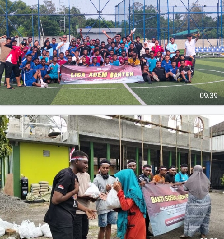 Liputanabn.com | SERANG, Menyambut peringatan Hari Ulang Tahun ke-80 Kemerdekaan Republik Indonesia, para Pelajar Afirmasi Pendidikan Menengah (ADEM) Provinsi Banten asal Papua menggelar bakti sosial dan perlombaan pertandingan mini soccer di Kramatwatu, Kabupaten Serang, Sabtu, 9 Agustus 2025.