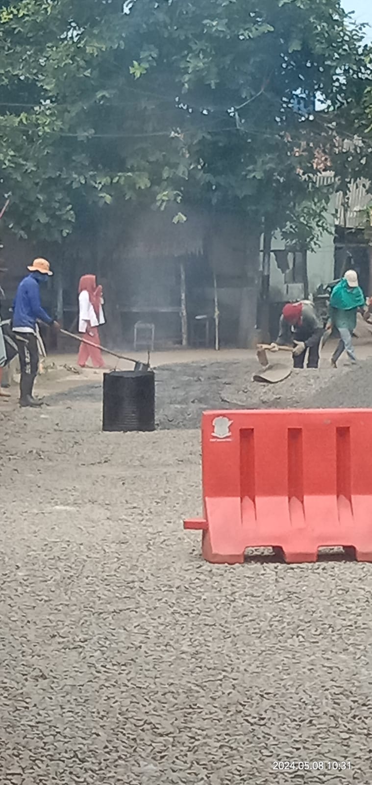 Lapisan penetrasi lapen/pengaspalan jalan desa yang kini tengah di kerjakan pemerintah desa muara,kecamatan wanasalam,kabupaten lebak banten.