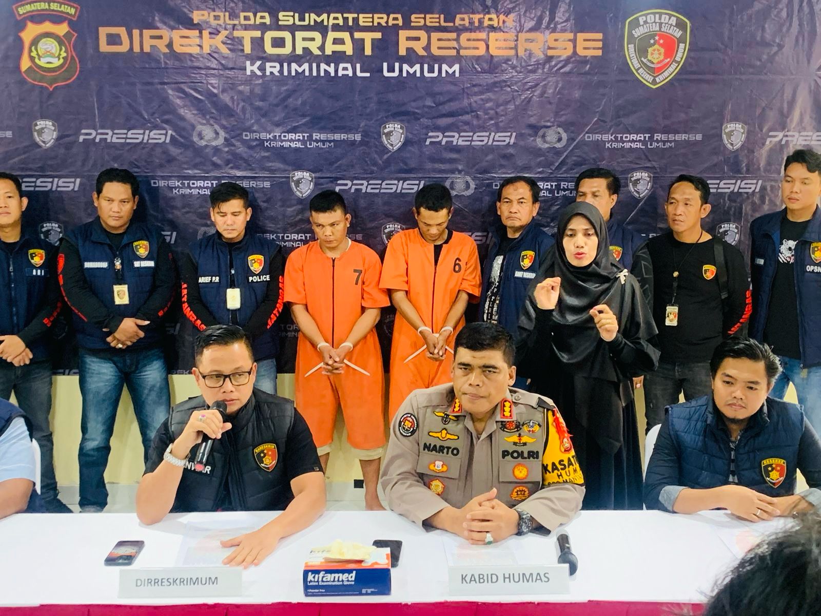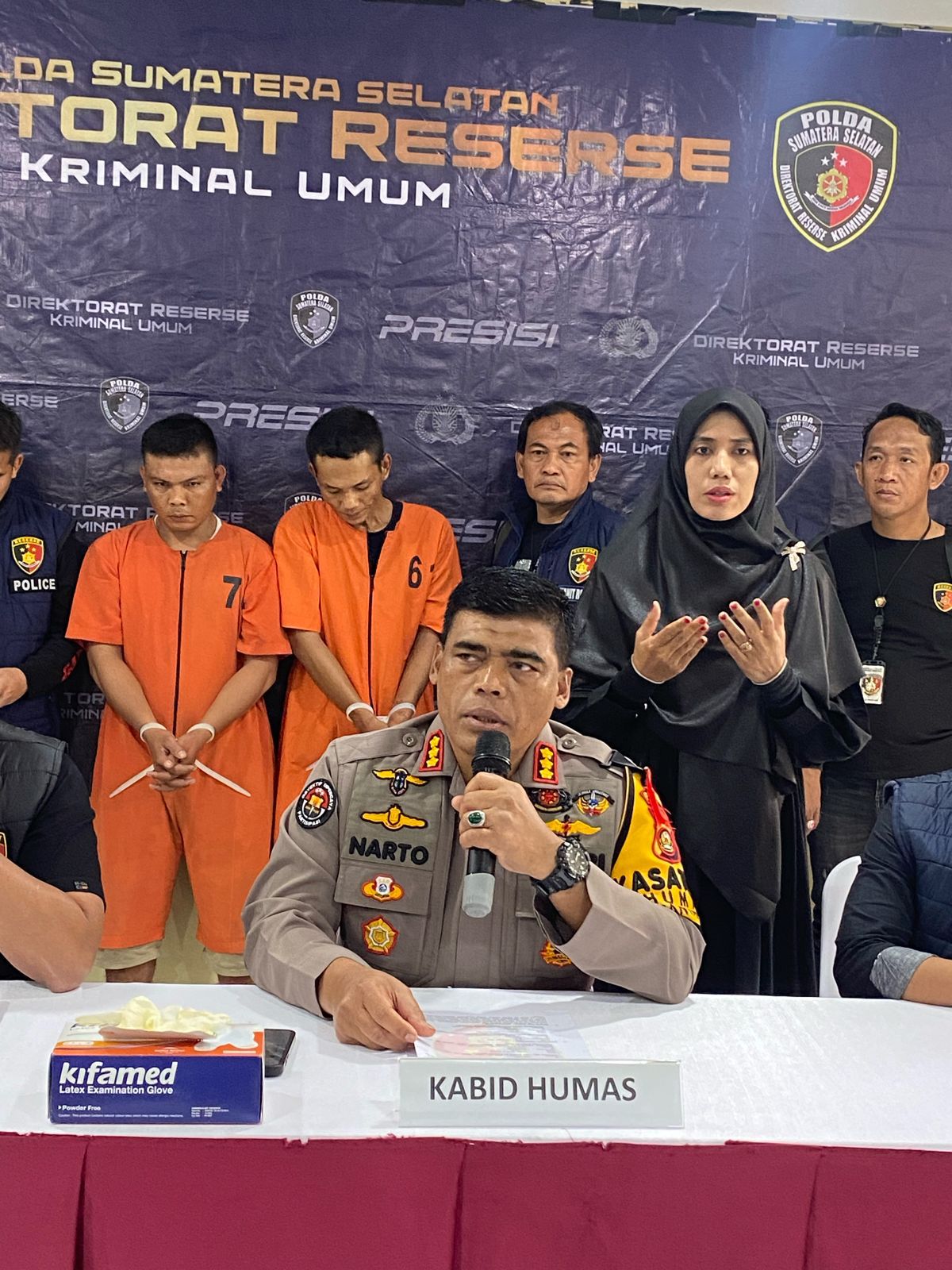 Direktur Krimum Polda Sumsel Kombes Anwar saat menggelar ekspose di Mapolda Kamis siang (8/2/2024), bersama Kabid Humas Kombes Narto dan Kasat Reskrim Polres Ogan Ilir AKP Muhammad Ilham mengatakan kedua pelaku ditangkap setelah dilakukan pengejaran selama empat hari.