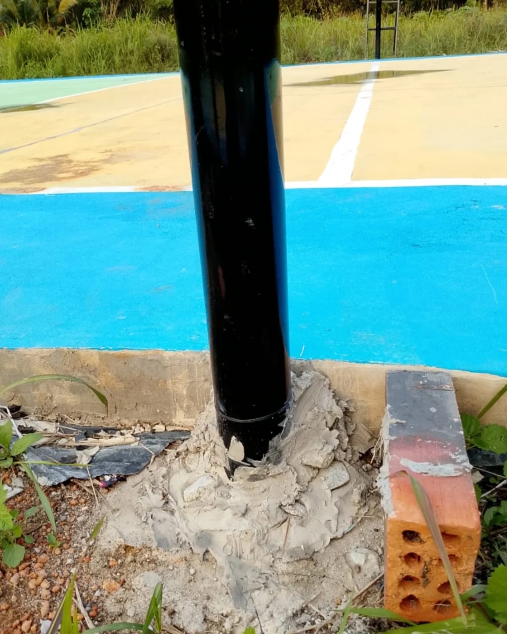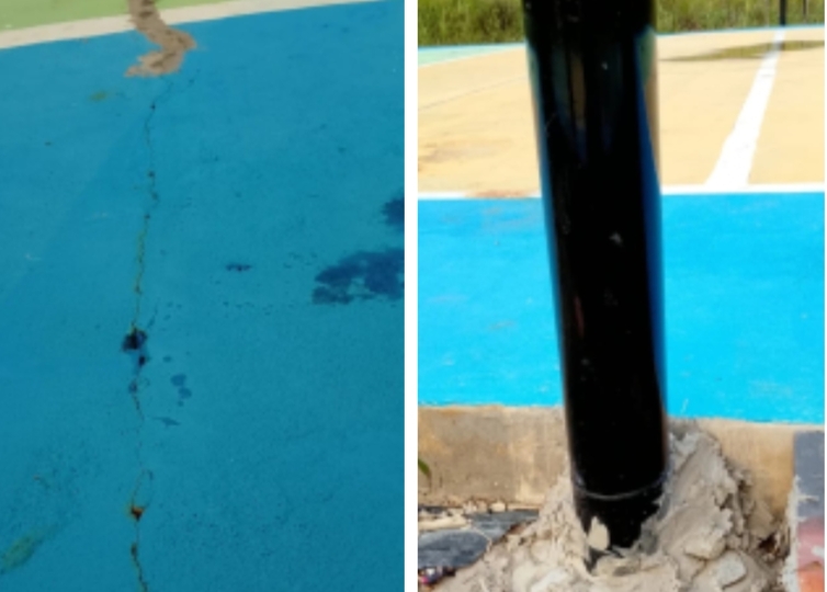 Saat awak media melakukan investigasi langsung ke lokasi pada Sabtu, 10 Oktober 2025, ditemukan sejumlah kejanggalan pada pelaksanaan proyek. kondisi lapangan tampak tidak merata, kualitas adukan semen terlihat lebih banyak pasir daripada semen, bahkan tiang coran sudah mulai retak padahal proyek belum genap sebulan dikerjakan. besi yang digunakan untuk tiang dan cor juga berukuran tipis, sementara jaring lapangan terlihat kecil dan mudah putus.