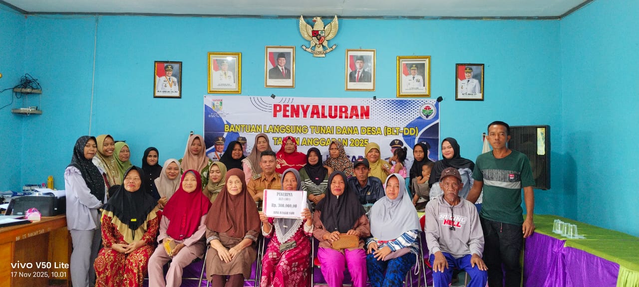 Penyerahan Bantuan Langsung Tunai Dana Desa (BLT-DD) tersebut dilaksanakan di Kantor Desa Banjar Sari, Senin (17/11/2025).