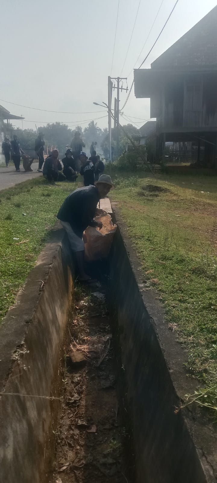 Pemdes Pelajau Ilir Gotong Royong Bersihkan Siring Bersama KKN UIN Palembang dan Masyarakat