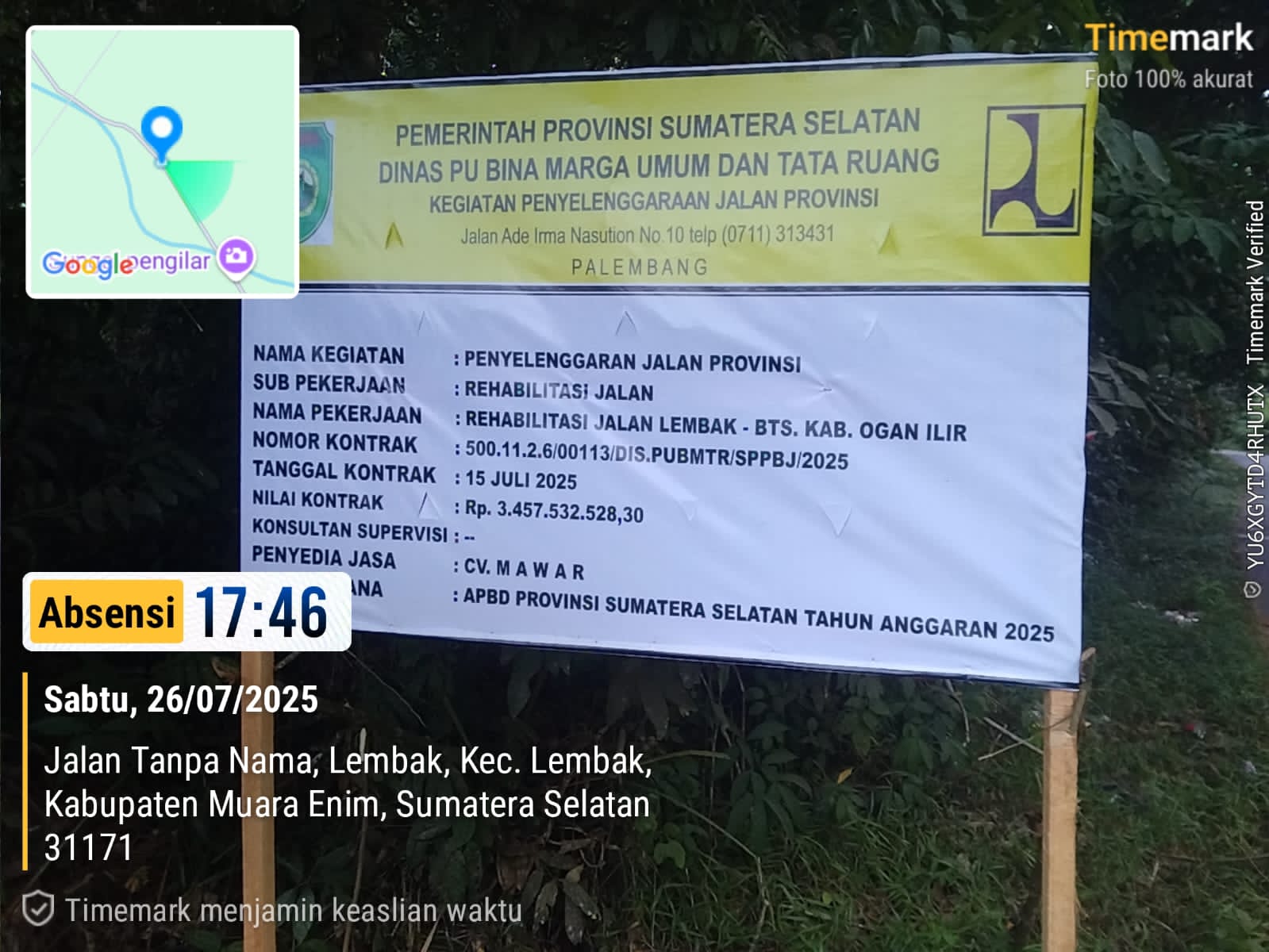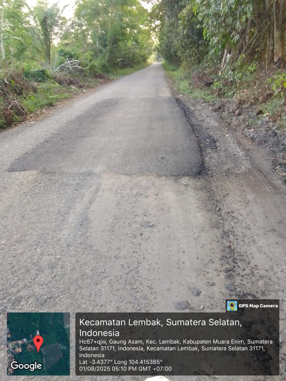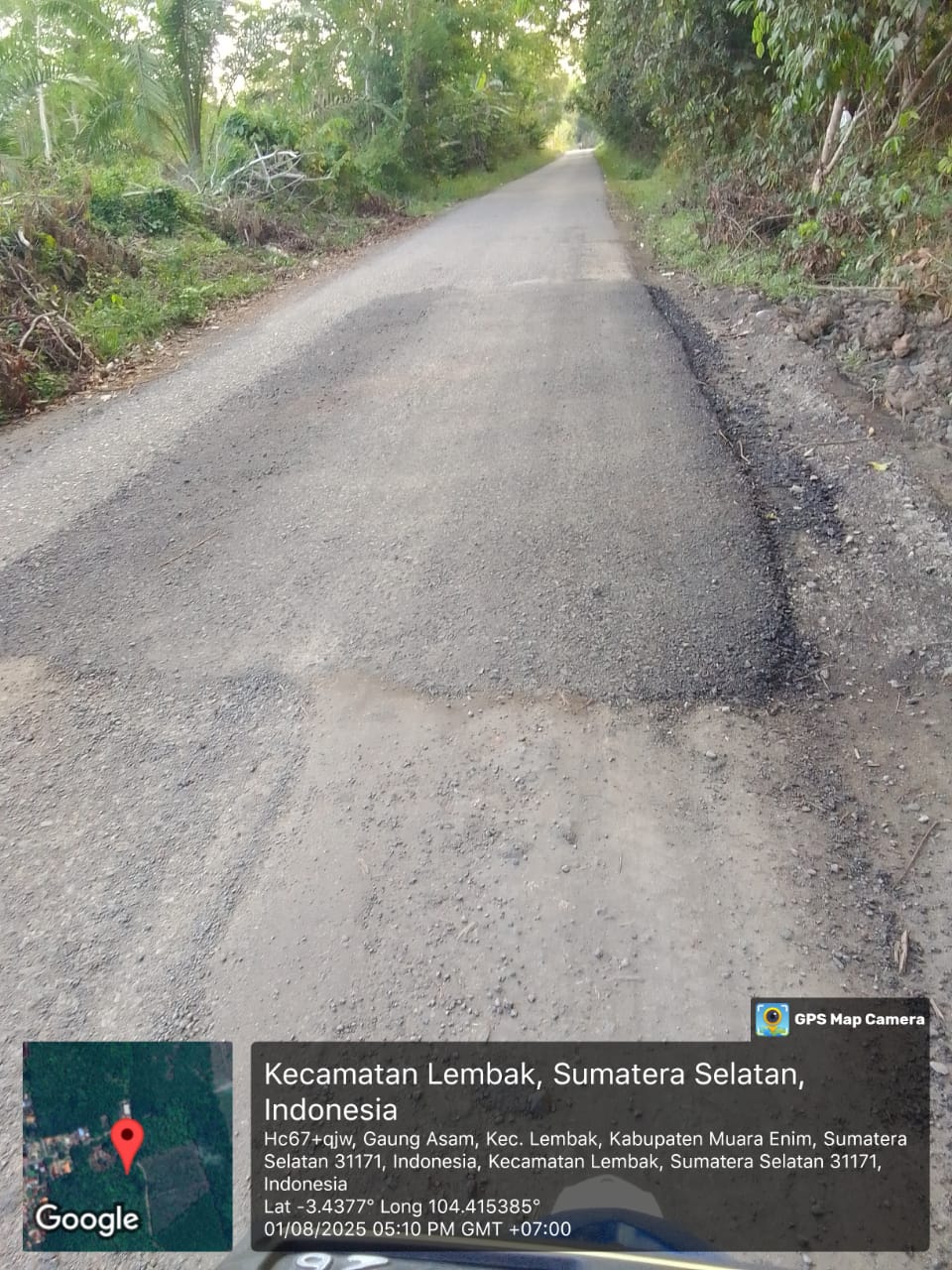 Liputanabn.com | MUARA ENIM, Pemerintah Provinsi (Pemprov) Sumatera Selatan melakukan perbaikan jalan Dengan Judul Penyelanggara Jalan Provinsi, Lembak BTS Kabupaten Ogan Ilir, jalan Penghubung Desa Paya Besar Kecamatan Payaraman dan Desa Gaung Asam Kecamatan Belida Darat.