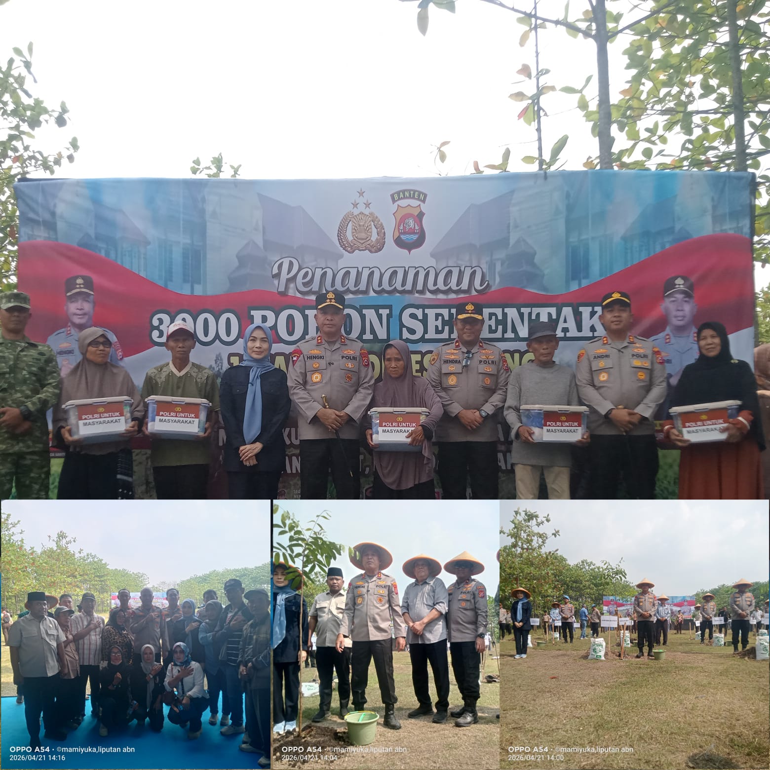 Kapolres Serang dalam sambutannya menyampaikan bahwa penanaman ribuan pohon ini bertujuan untuk menjaga kelestarian alam, mencegah terjadinya banjir, serta mengurangi dampak perubahan iklim. Ia juga mengapresiasi antusiasme masyarakat yang hadir dan terlibat langsung dalam kegiatan tersebut.