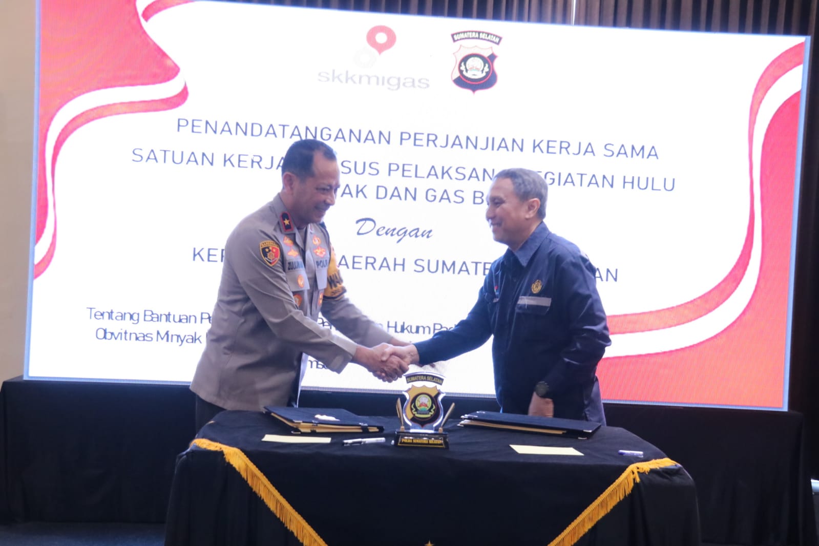 “Perjanjian Kerja Sama (PKS) ini menjadi acuan sebagai landasan hukum bagi kami dalam menjalankan rangkaian kegiatan dan menjadi komitmen bagi kami untuk memastikan bahwa seluruh Wilayah Kerja SKK Migas- KKKS Sumsel ini dalam keadaan aman dan lancar,” urai mantan Dirreskrimsus Polda Sumsel