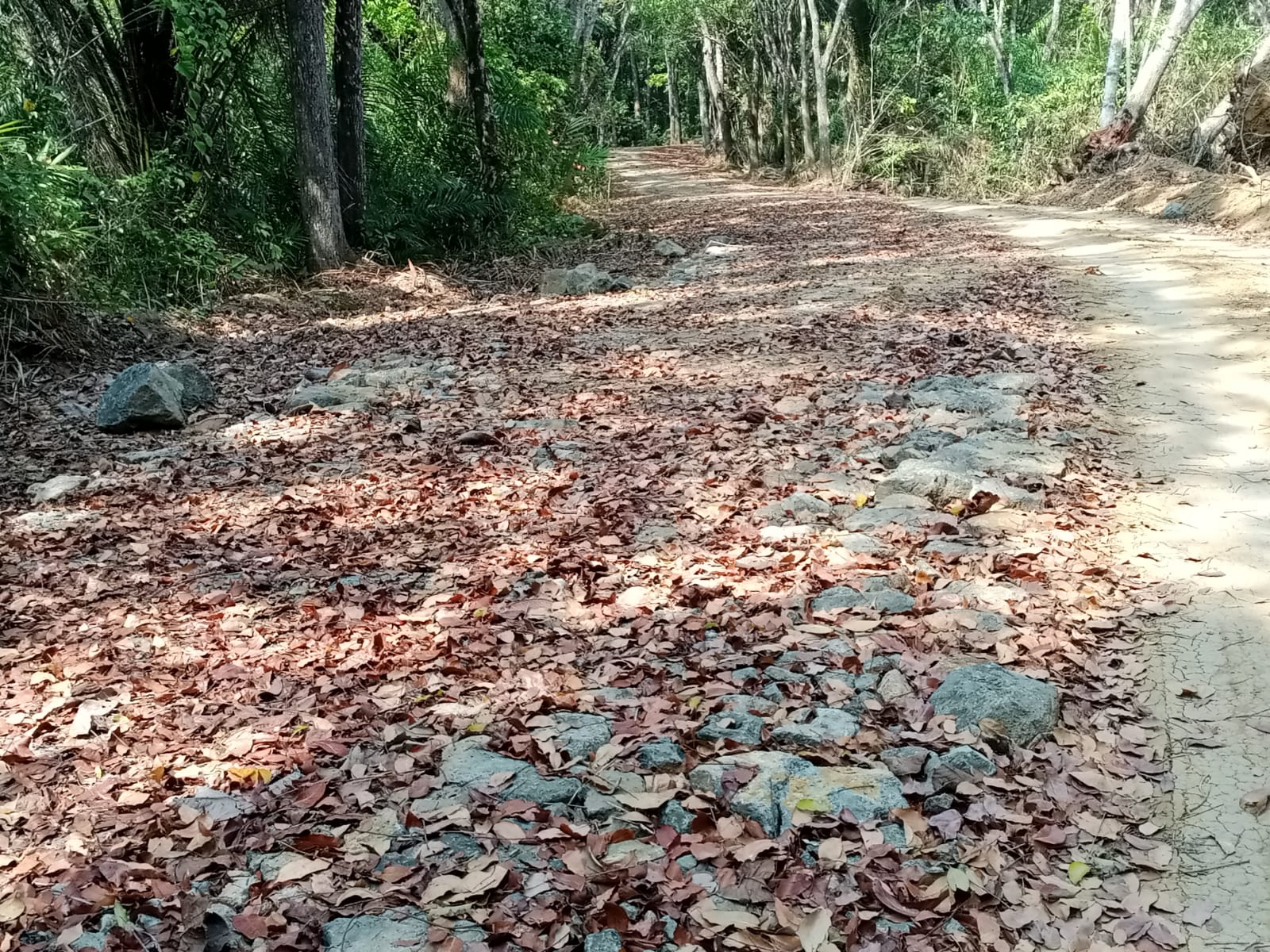 Mereka memakai jalan tanah yang ada di samping jalan tersebut dengan di musim kemarau jalan tersebut dipenuhi oleh debu