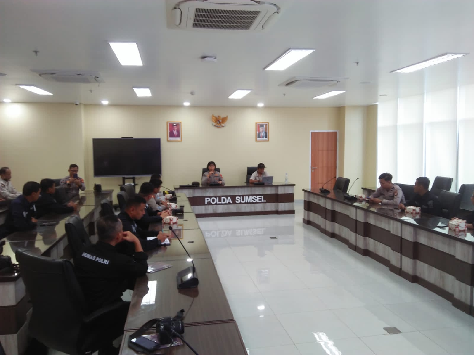 Personel liputan Bidhumas dan Spripim antusias mendengarkan materi pelatihan fotografi yang disampaikan oleh trainer Nova Wahyudi