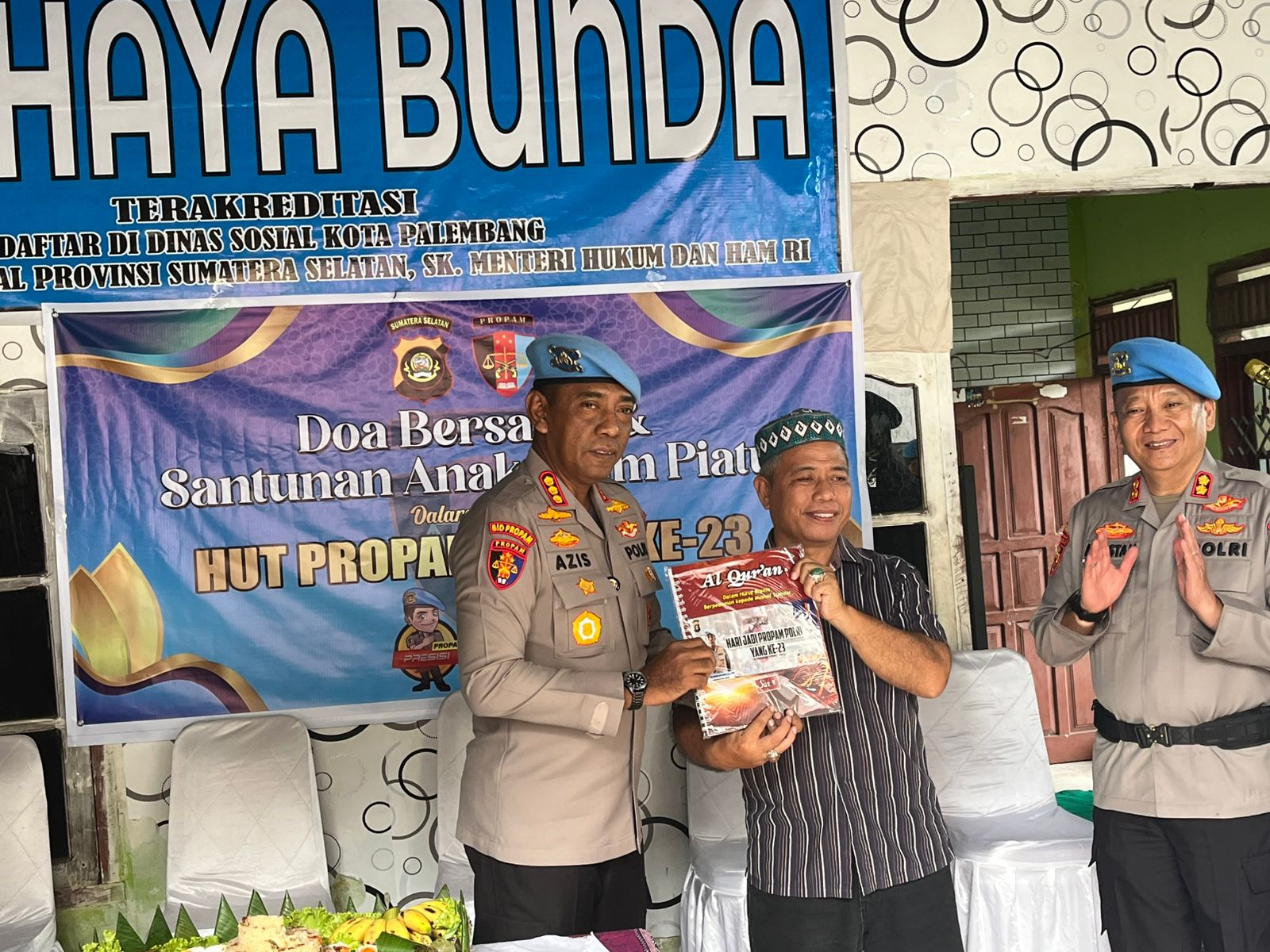 Liputanabn.com | Palembang — Guna memperingati Hari Ulang Tahun ke-23 Bidang Profesi dan Pengamanan (Propam) Polri 17 Oktober 2025, Bidpropam Polda Sumatera Selatan melaksanakan kegiatan bakti sosial dengan memberikan bantuan kepada anak-anak tuna rungu dan yatim piatu yang seluruh kegiatannya dipusatkan di Panti Sosial Cahaya Bunda, Jalan Pipa Reja, Palembang, Jumat (17/10/2025) pukul 09.00 WIB.