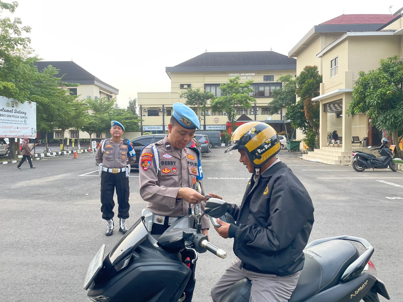 Kegiatan yang dimulai sejak pukul 07.00 WIB tersebut diawali dengan pemeriksaan di pintu masuk Mapolda Sumsel