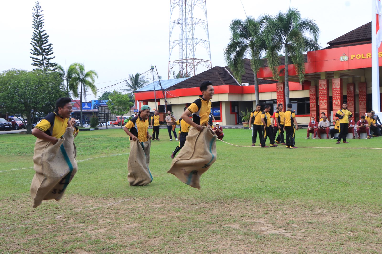 Perlombaan Balap Karung dan Tarik Sarung yang dibuka Oleh Wakapolres Banyuasin Berlangsung Meriah