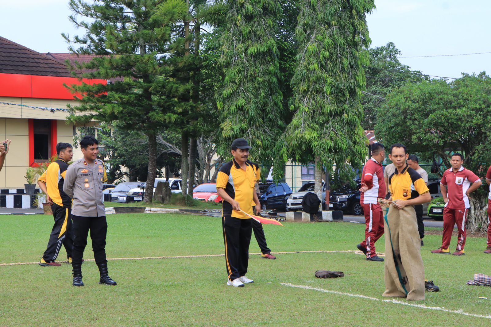 Liputanabn.com | POLRES BANYUASIN – Demi Mempererat tali persaudaraan antara personel Polres Banyuasin dan memeriahkan Hut Bhayangkara ke-78, Kompol Adriansyah SE SIK selaku Wakapolres Banyuasin membuka perlombaan balap karung dan tarik sarung di halaman Mapolres Banyuasin, Kamis (19/6/24)
