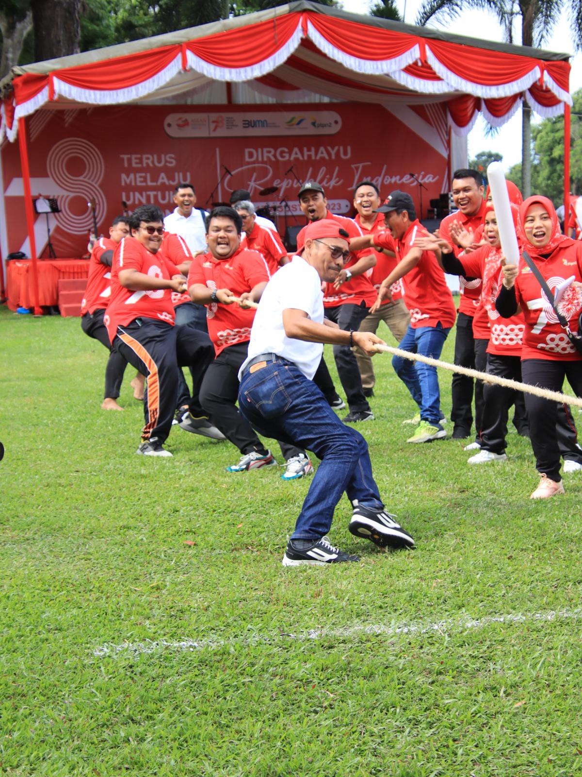 Setelah mengikuti acara puncak peringatan HUT Proklamasi ke 78 secara Daring, Board of Magement (BoM) beserta karyawan melaksakan berbagai kegiatan perlombaan yang juga diikuti Direktur PTPN 2 serta Board of Management (BoM) PTPN 2 dan sebagian besar unsur karyawan dan karyawati PTPN 2.