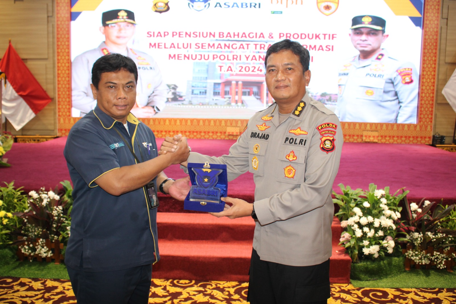 Liputanabn.com | Palembang, 29 Mei 2024 – Dalam rangka mempersiapkan anggota dan PNS Polri yang akan memasuki masa pensiun, Polda Sumatera Selatan menyelenggarakan pelatihan bertema “Persiapan Pensiun Bahagia & Produktif, Semangat Transformasi Menuju Polri Yang Presisi Tahun 2024”. Acara yang berlangsung di Auditorium lantai 7 Gedung Presisi Mapolda Sumsel ini dihadiri oleh sejumlah pejabat penting dan undangan eksternal yang memberikan materi dan motivasi.
