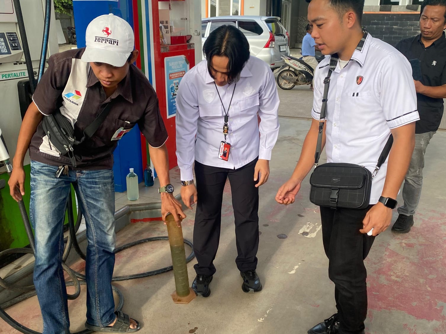 Dari pemeriksaan, petugas mendapati cairan yang jelas menunjukkan air bercampur dengan Pertamax. Dua botol sampel telah diamankan untuk pemeriksaan lebih lanjut di laboratorium.