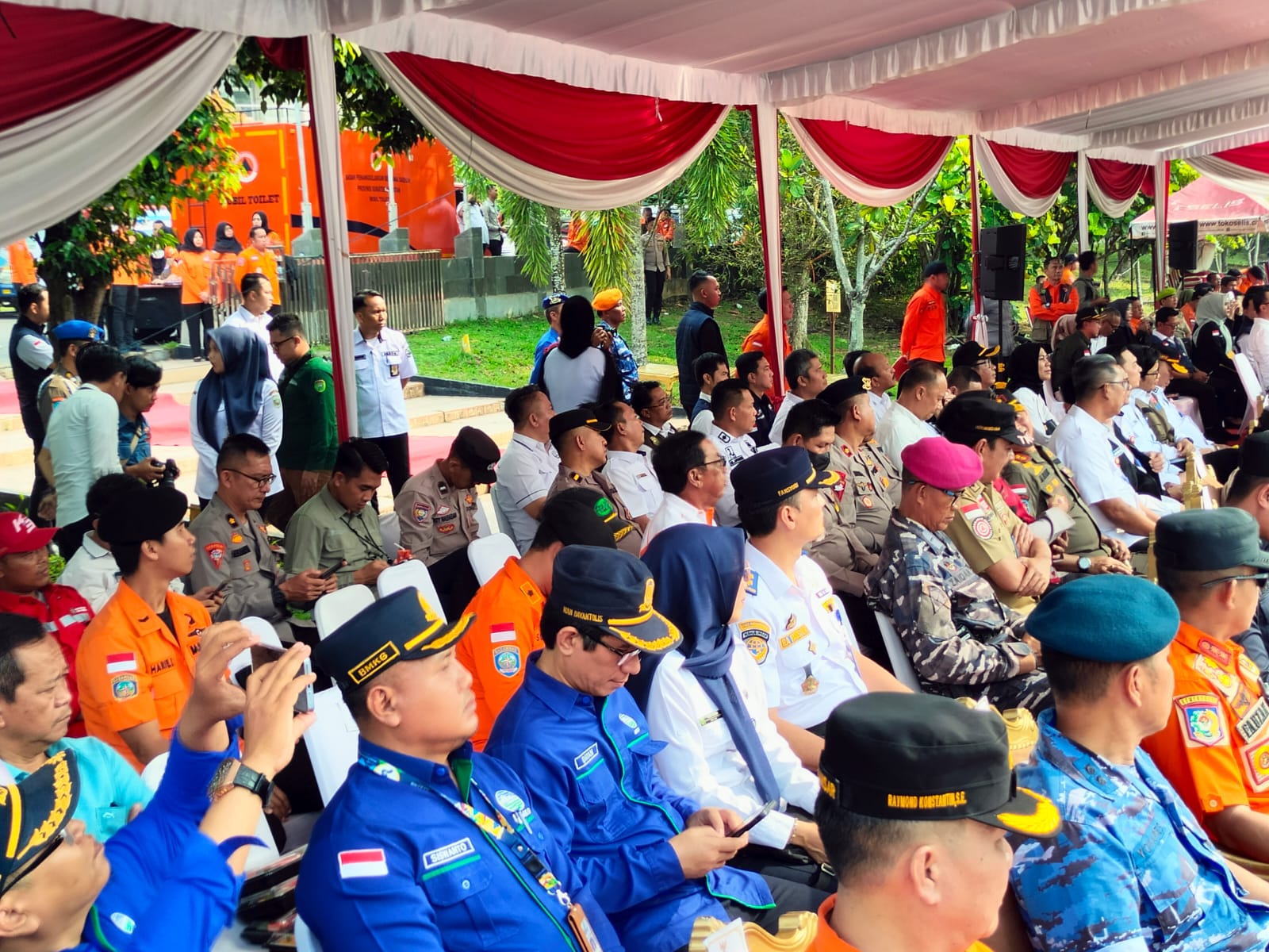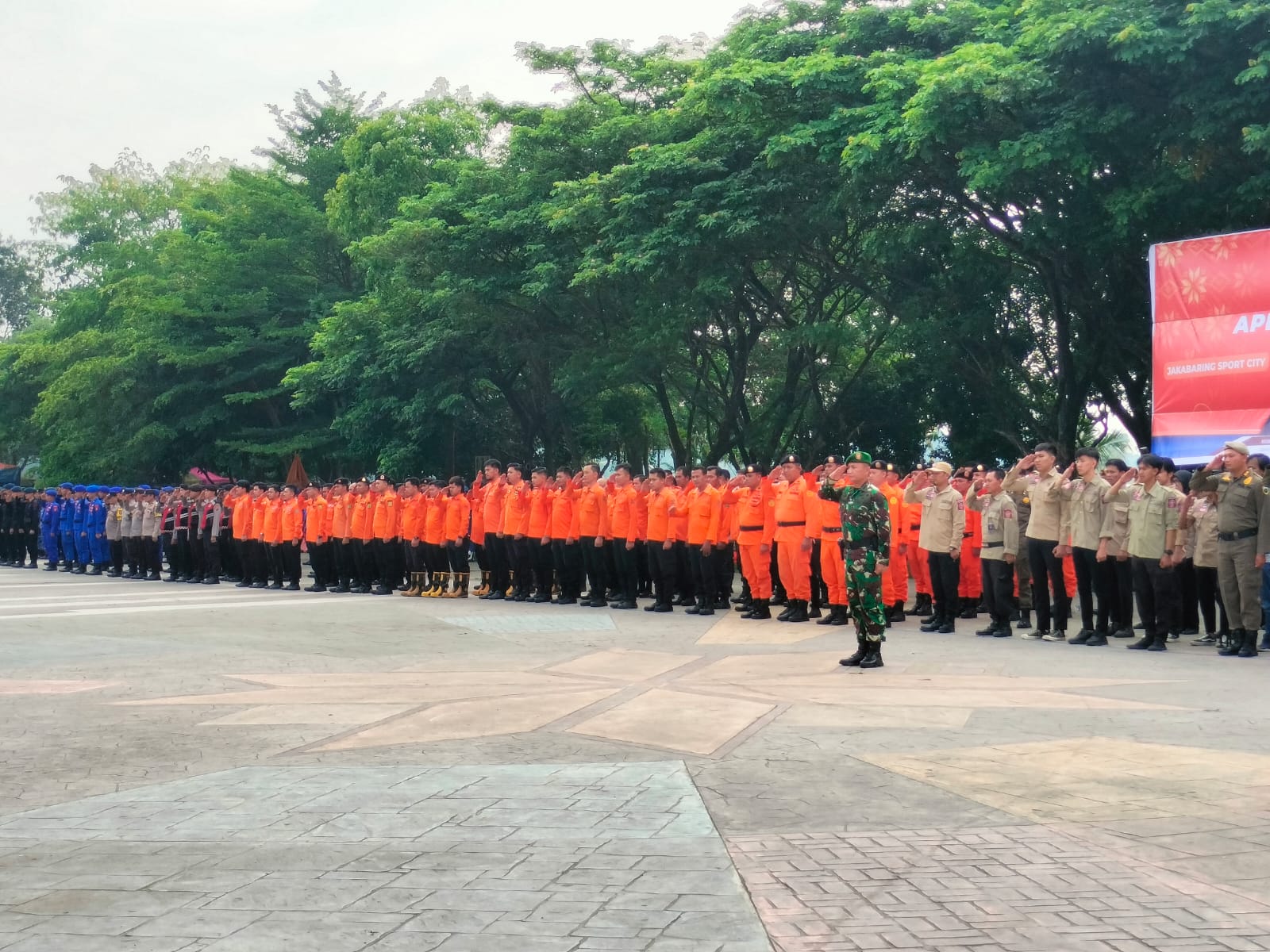 Liputanabn.com | Palembang – PJ Gubernur Sumsel Elen Setiadi SH, MSE Pimpin Apel dan Simulasi. banjir Sumsel. tahun 2024 dilapangan Shooting Range Jakabaring Sport City(JSC) Palembang Rabu 23/10/2024
