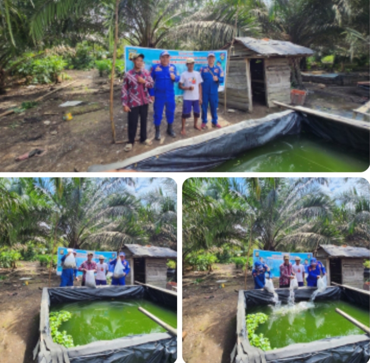 Bantuan ini diberikan kepada Santoso, seorang warga Desa Tirto Raharjo Jalur 20, yang kolam ikannya kini menjadi mitra Dirpolairud Polda Sumsel.