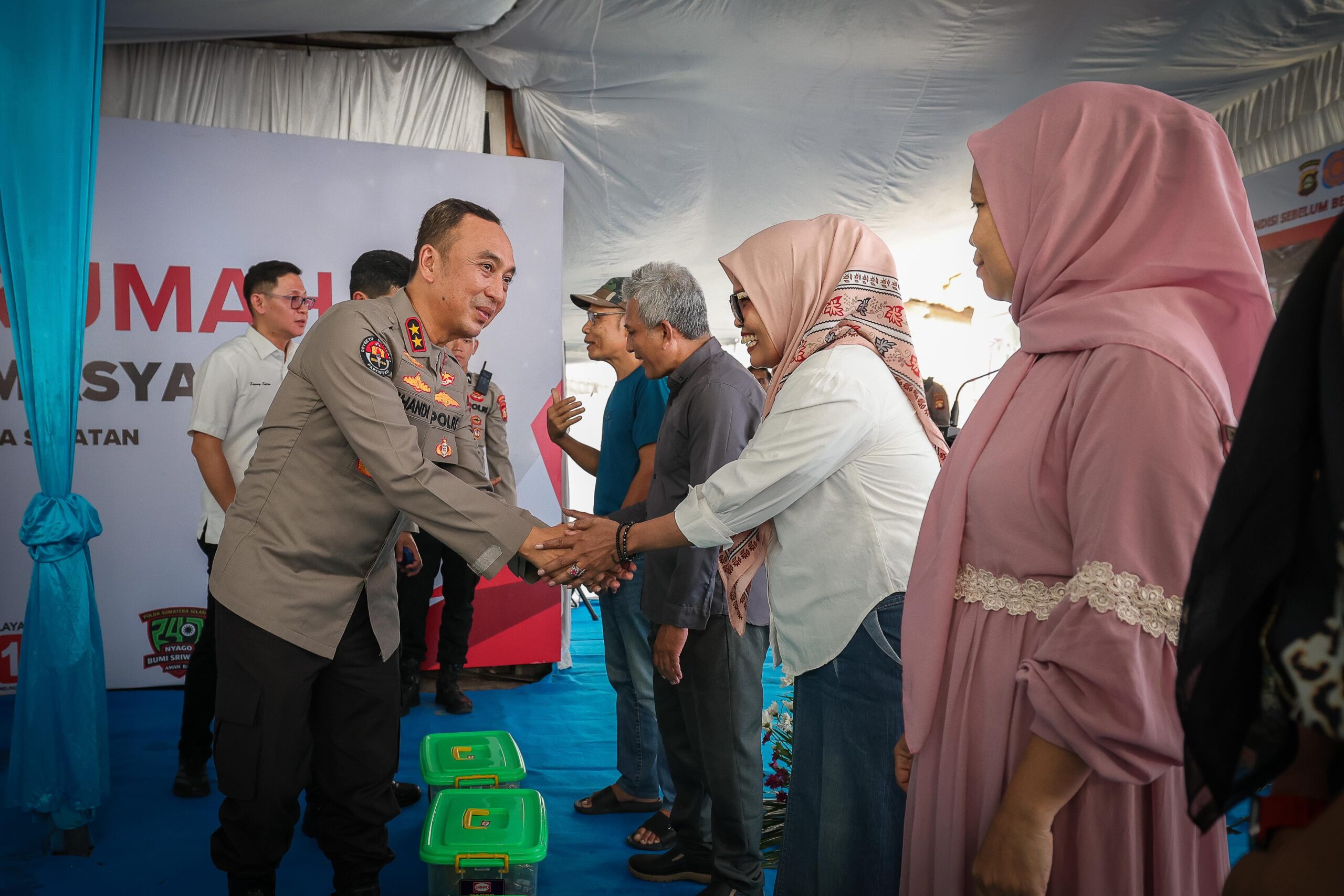 Kapolda Sumsel Irjen Pol Dr. Sandi Nugroho, S.I.K., S.H., M.Hum. memimpin langsung kegiatan tersebut sebagai wujud nyata kehadiran Polri di tengah masyarakat, khususnya dalam membantu warga yang membutuhkan hunian layak.