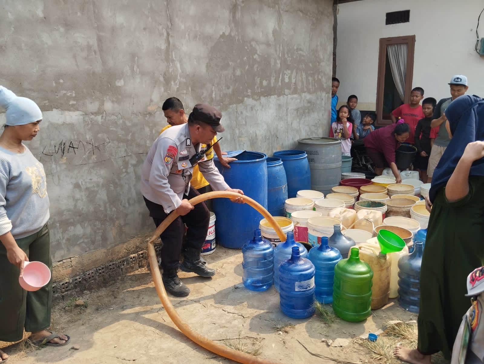‘’Air bersih wilayah itu kurang dan warga sangat membutuhkannya dan untuk meringankan beban masyarakat, kita mendistribusikan ribuan liter air bersih,’’ jelas Dir Binmas Polda Sumsel Kombes Pol Sofyan Hidayat SIK MM kepada wartawan di sela-sela pendistribusian air bersih, Kamis (12/10/2023) siang.