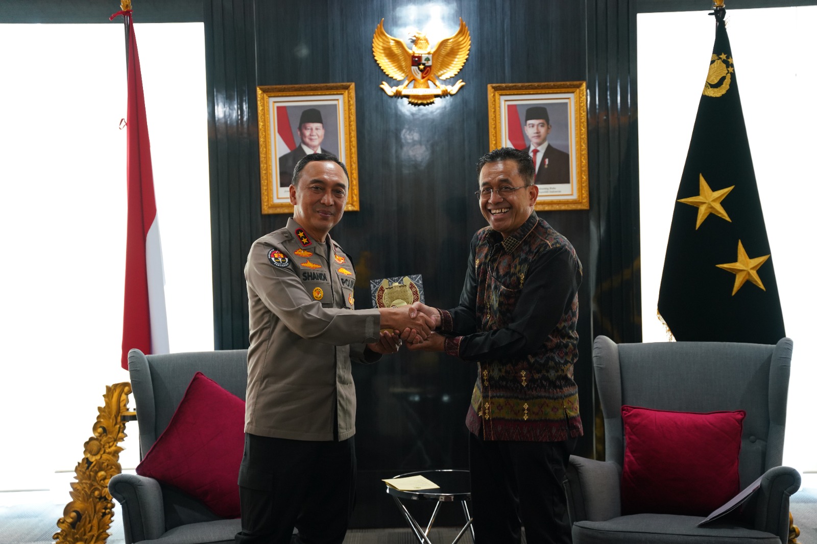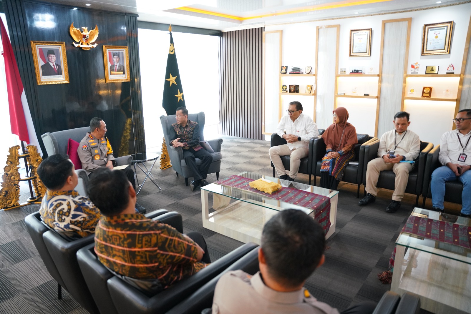 Kapolda Sumsel Irjen Pol Dr. Sandi Nugroho, S.I.K., S.H., M.Hum. menerima langsung audiensi Kepala OJK Provinsi Sumatera Selatan Arifin Susanto beserta jajaran di Mapolda Sumsel, Palembang.