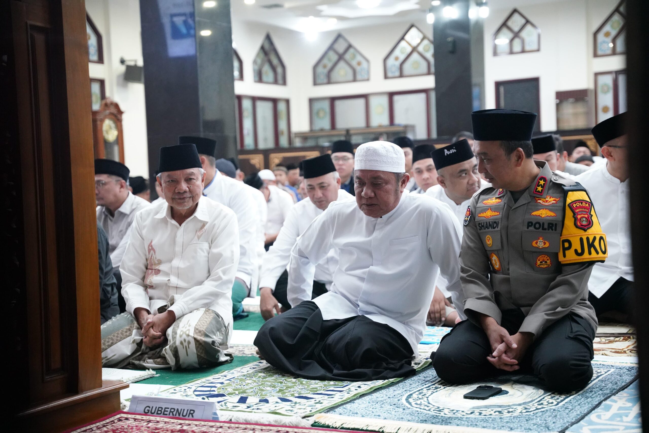 Kapolda Sumsel Irjen Pol Dr. Sandi Nugroho menegaskan bahwa momentum Ramadhan menjadi sarana memperkuat keimanan sekaligus soliditas lintas institusi. Ia memastikan Polda Sumatera Selatan terus menjaga stabilitas kamtibmas agar masyarakat dapat menjalankan ibadah puasa dengan aman dan khusyuk.