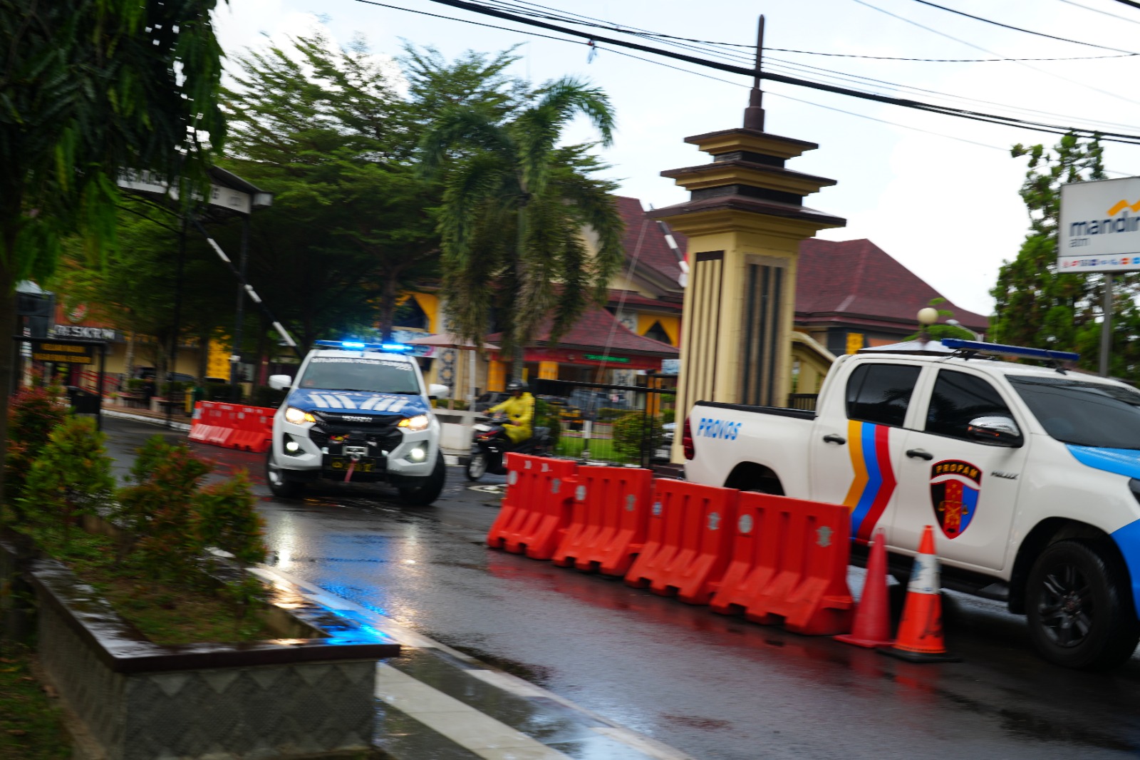 dengan menggunakan kendaraan Ditlantas = 1 Mobil sedan + 1mobil double cabin