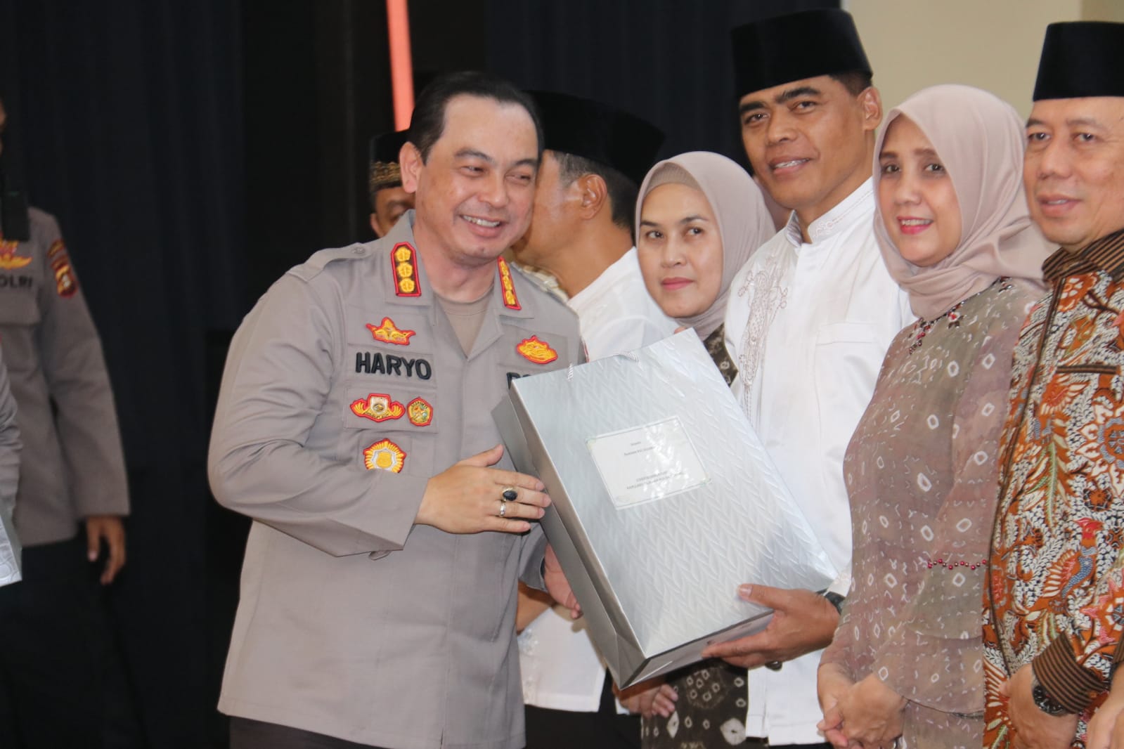 Wakapolda Sumsel, dan dari Kapolda Sumsel beserta istri. Momen ini menjadi simbol penghargaan atas jasa dan kontribusi pejabat lama serta sambutan hangat bagi pejabat baru.
