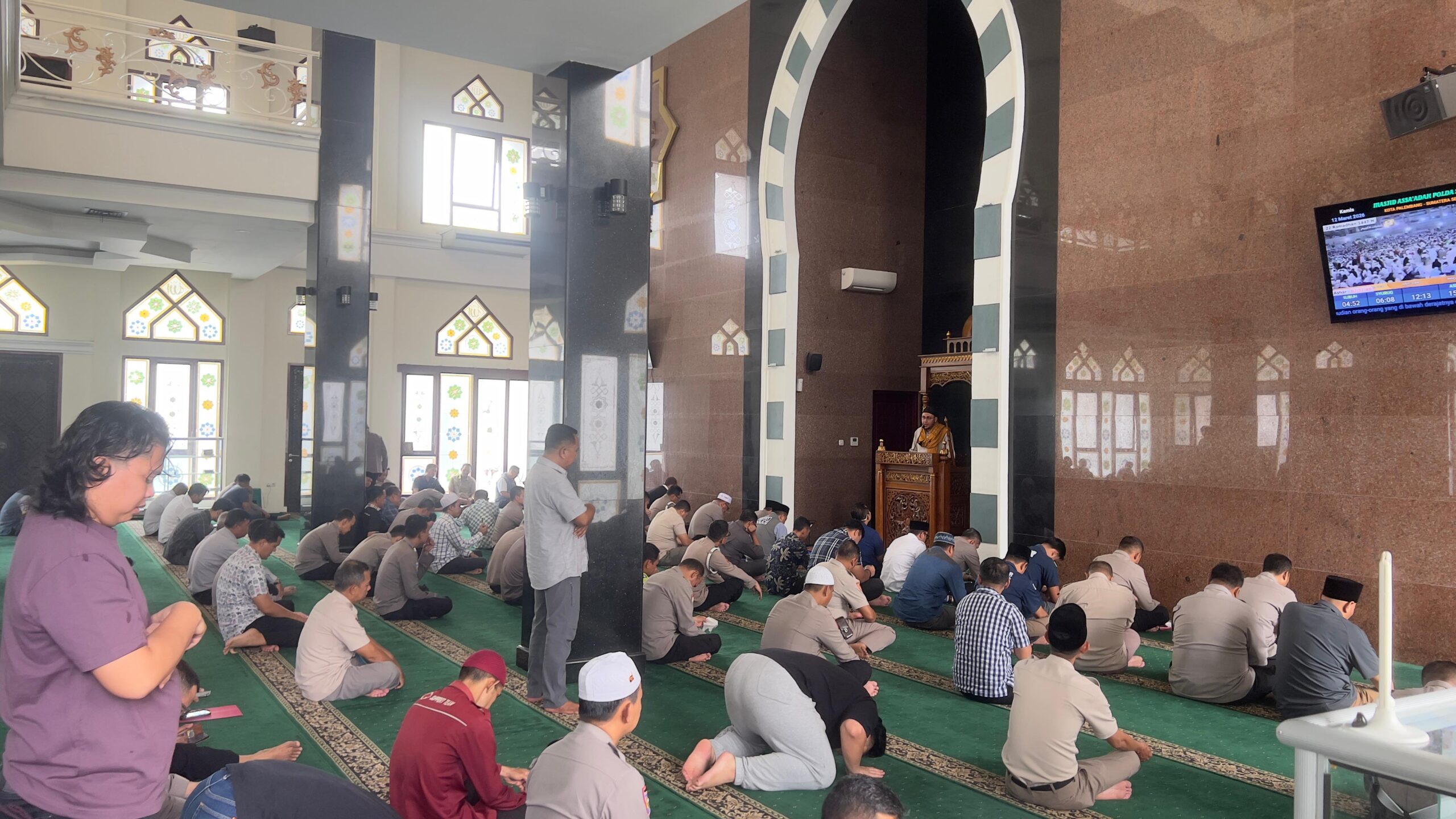 Liputanabn.com | Palembang – Mengisi bulan suci Ramadan 1447 H dengan kegiatan positif, Personel Polda Sumsel menyelenggarakan Pembinaan Rohani dan Mental (Binrohtal) bagi personel yang beragama Islam. Kegiatan bertajuk “Hikmah Puasa di Bulan Suci Ramadhan 1447 H” kegiatan rutin yang dilaksanakan setiap bada sholat Zuhur selama dalam bulan suci Ramadhan bertempat di Masjid Assa’adah Mapolda Sumsel Jalan Jenderal Sudirman Palembang, Kamis (12/03/2026).