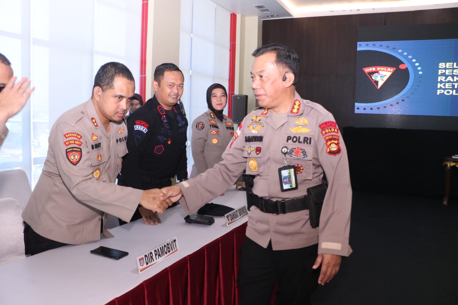 Wadirlantas Polda Sumsel AKBP Sigit Adi Wuryanto, S.I.K. Wadansat Brimob Polda Sumsel AKBP Eko Sumaryanto, S.I.K., M.Si.Kasubbid Penmas Polda Sumsel AKBP Yenni Diarty, S.I.K.;