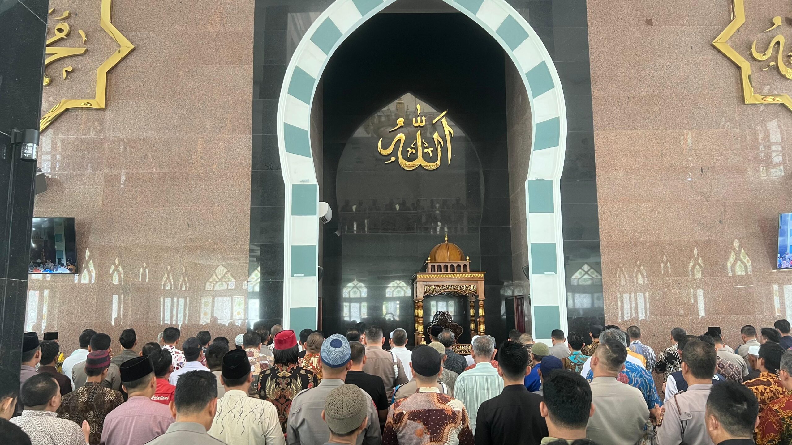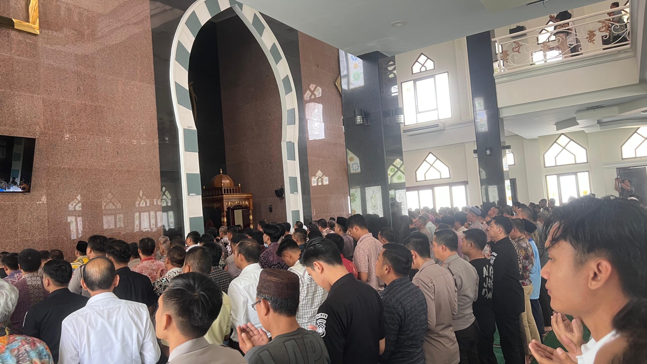 Sebagai bentuk Duka Mendalam Polda Sumsel menggelar Salat gaib dilaksanakan di Masjid Assa’ adah Polda Sumsel, Jumat (29/8/2025) seusai pelaksanaan salat Jumat. Ibadah dipimpin oleh imam masjid, Ustaz H.Zulfikar dari Kementerian agama Kota Palembang dan diikuti ratusan jamaah dari personel hingga pejabat utama Polda Sumsel