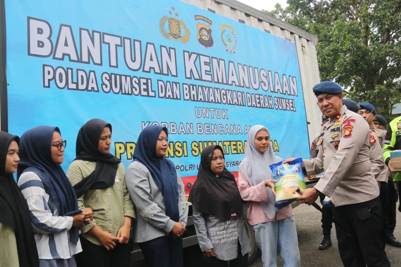 Polda Sumsel Kirim dan Serahkan Bantuan Logistik Kepada Korban Bencana Banjir Sumut Lewat Jalur Darat.