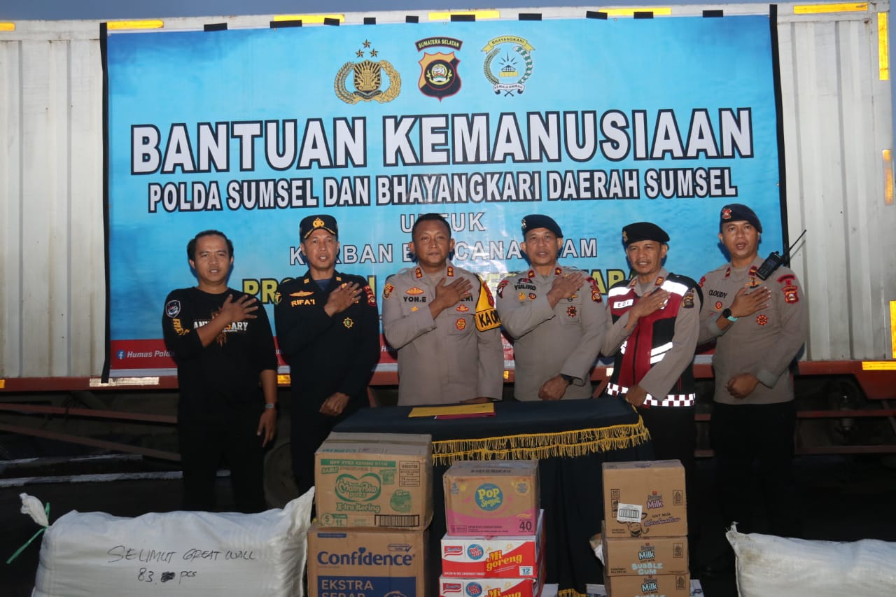 Polda Sumsel Kirim dan Serahkan Bantuan Logistik Kepada Korban Bencana Banjir Sumut Lewat Jalur Darat.