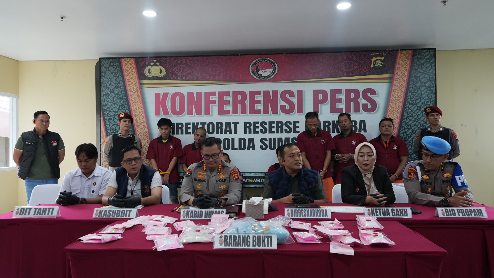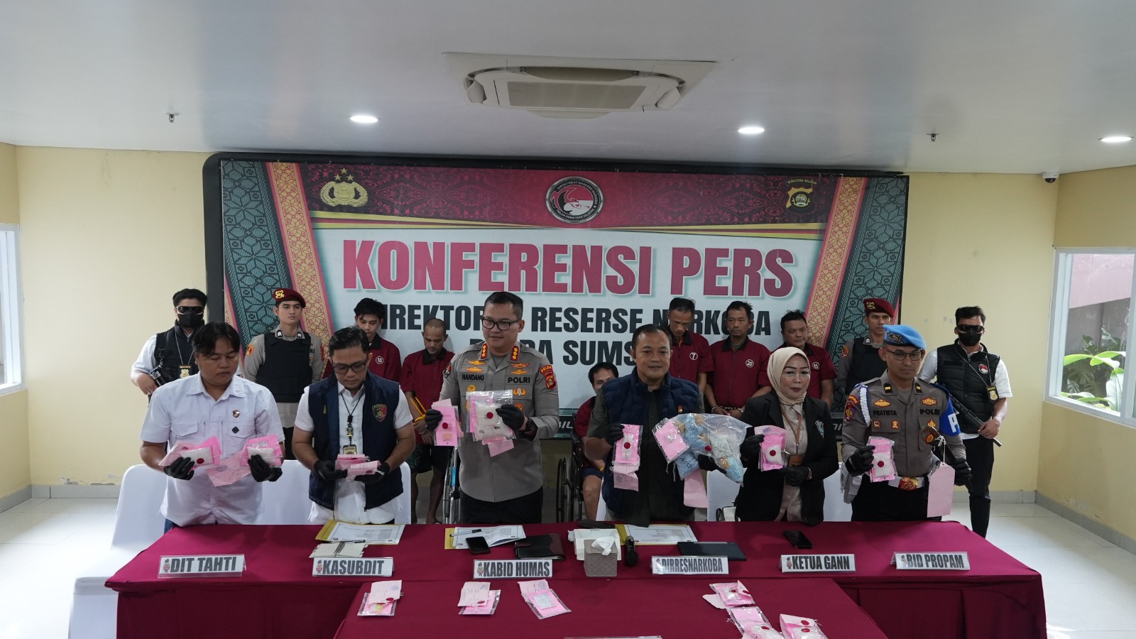 Direktur Reserse Narkoba Polda Sumsel Kombes Pol Yulian Perdana bersama. Kabid Humas Polda. sumsel.Kombes Pol Nandang Mu’min Wijaya, SIK, MH menuturkan anggotanya memberikan tindakan tegas terhadap tiga tersangka berinisial inisial AM, UJG, dan FEB karena melakukan perlawanan dengan senjata tajam kepada anggota saat dilakukan penangkapan.
