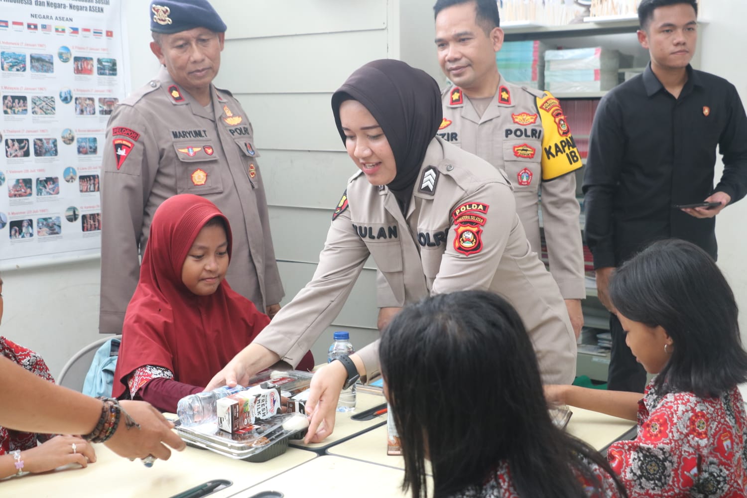 Polda Sumsel Menggelar Program Memberian Makan Siang Bergizi Pada Pelajar Sebagai Tindak Lanjut Asta Cita Presiden RI Bertempat di SDN 036