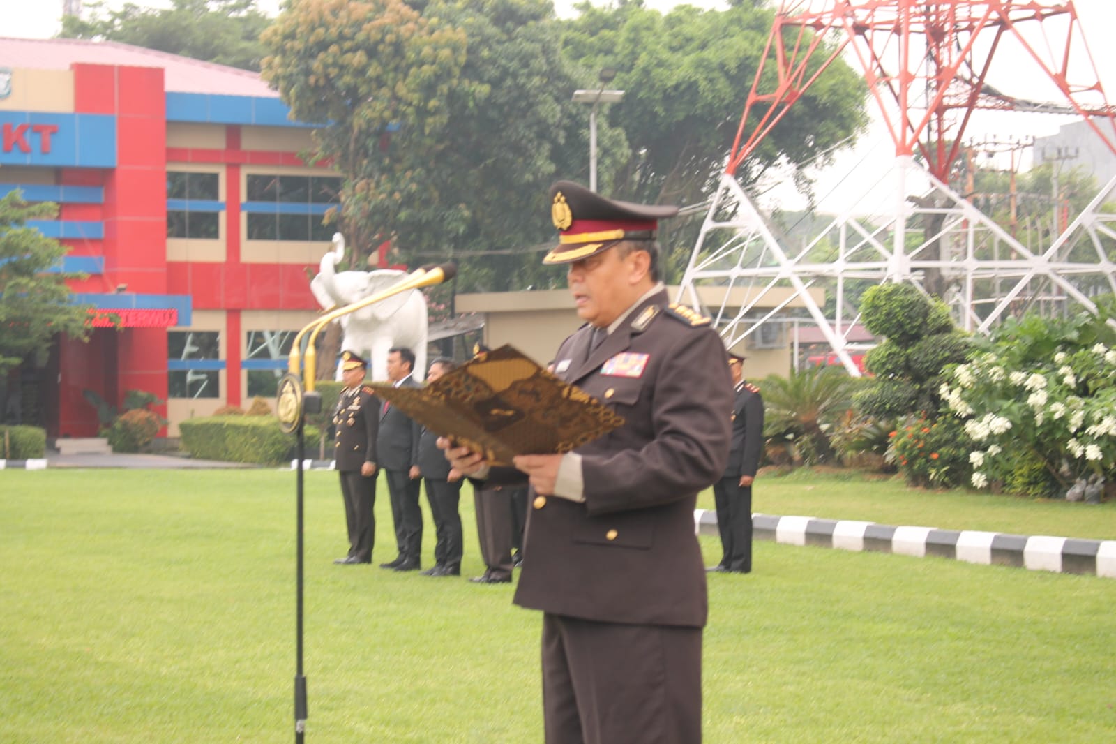 Karorena Polda Sumsel Kombes Pol Toto Wibowo,SH,MH selaku Inspektur Upacara membacakan amanat Kepala Badan Pembina Idiologi Pancasila Republik Indonesia.