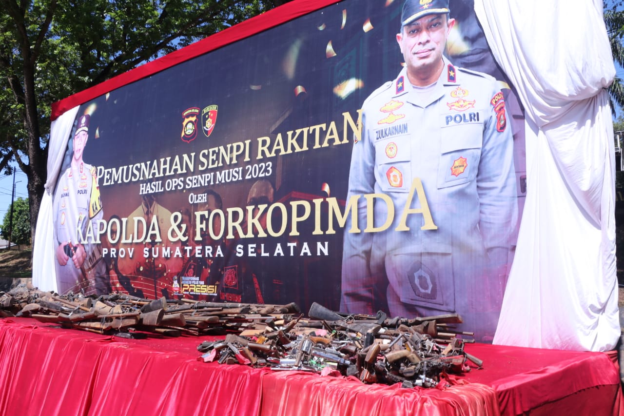 Polda Sumsel Musnakan Ratusan Senjata Api Rakitan Hasil Operasi Sempi Musi 2023