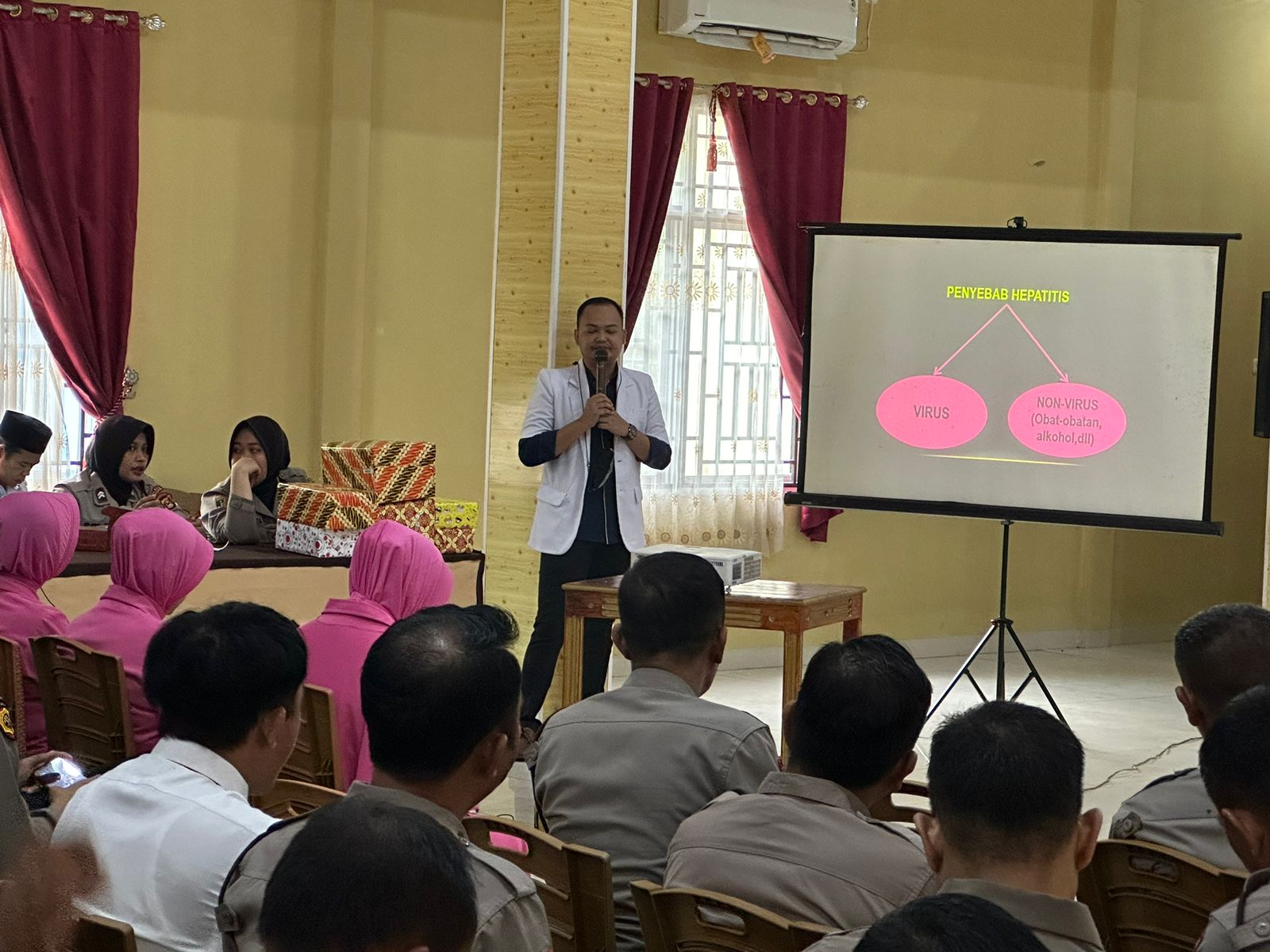 Liputanabn.com | BANYUASIN – Polres Banyuasin mengadakan penyuluhan kesehatan tentang Hepatitis Akut. Kegiatan tersebut berlangsung di Aula Gedung Sanika Satyawada Mapolres Banyuasin, Selasa (28/5) pukul 08.00 WIB.