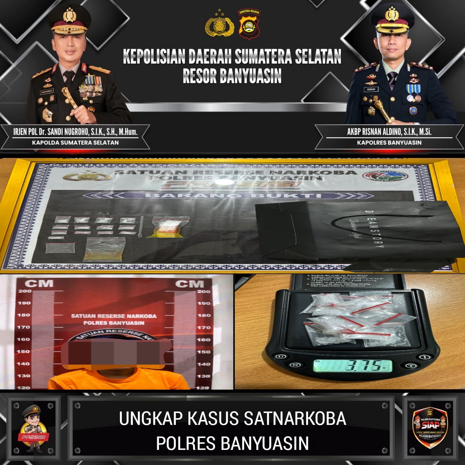 Pengungkapan bermula dari laporan masyarakat yang mencurigai aktivitas transaksi narkotika di salah satu rumah di kawasan tersebut. Menindaklanjuti informasi itu, tim Satresnarkoba Polres Banyuasin langsung melakukan penyelidikan dan operasi penindakan.