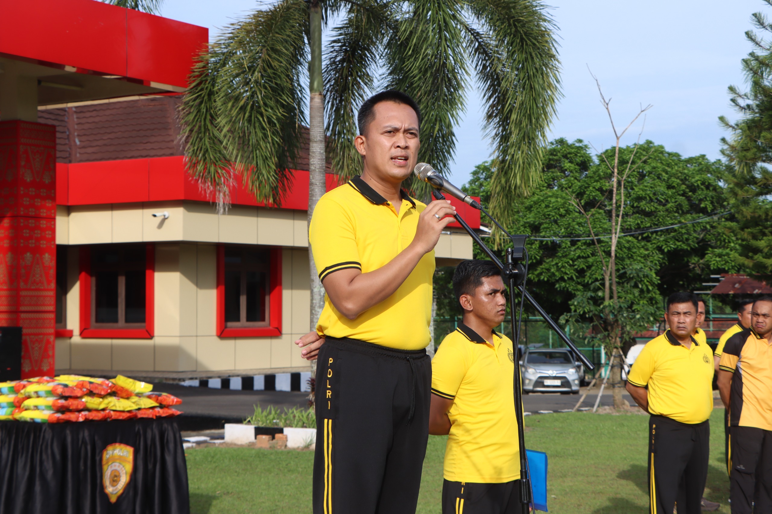 Sebagai wujud kepedulian dan perhatian pimpinan terhadap kesejahteraan personel, Kapolres Banyuasin secara simbolis menyerahkan tali asih berupa paket sembako (beras) kepada para personel. Pemberian bantuan sosial ini diharapkan dapat meringankan beban ekonomi keluarga personel.