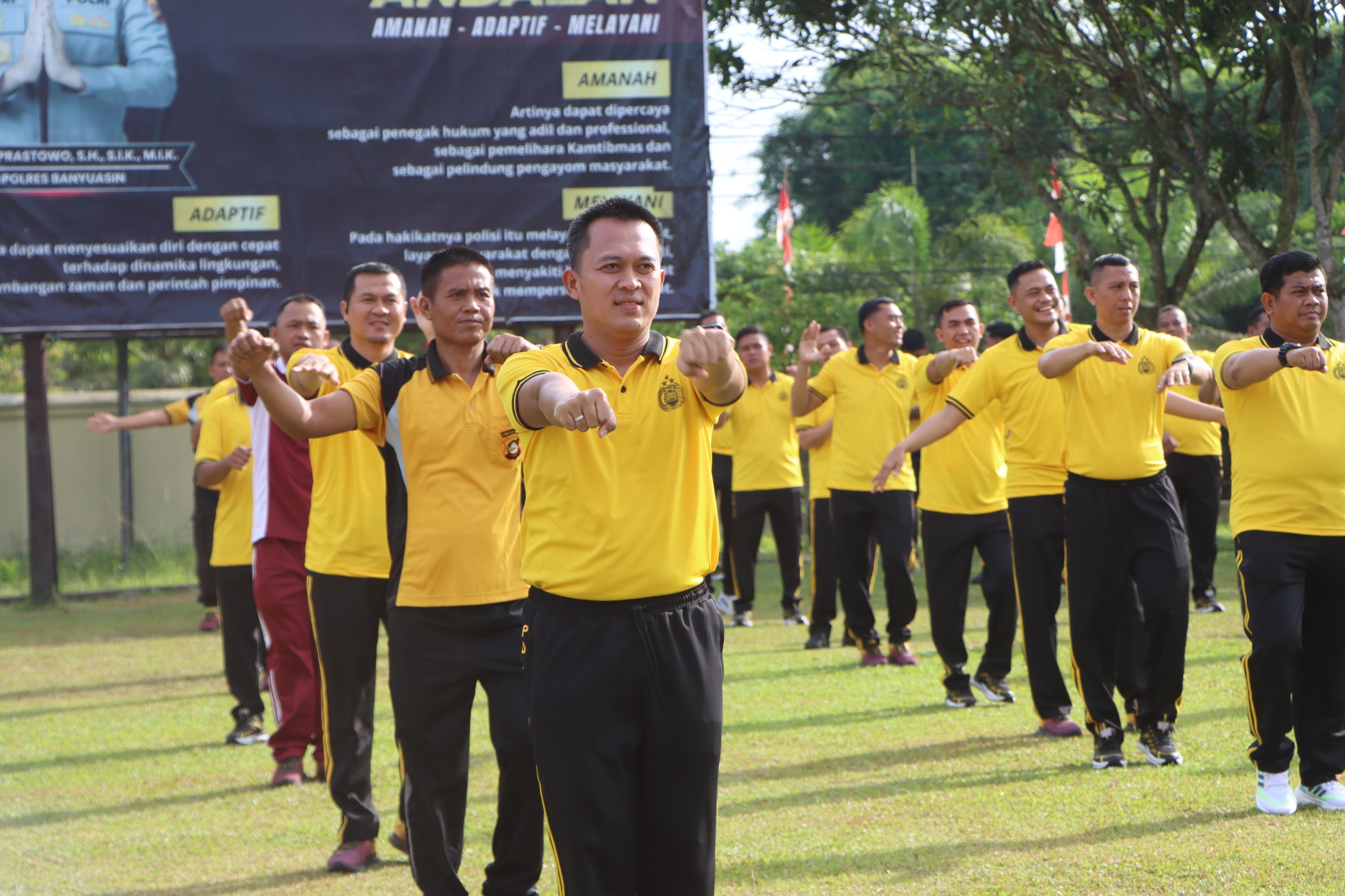 Sebagai puncak kegiatan, seluruh personel kemudian melaksanakan senam pagi bersama. Kegiatan ini bertujuan untuk menjaga kebugaran dan kesehatan jasmani, yang merupakan modal utama dalam menjalankan tugas-tugas kepolisian.