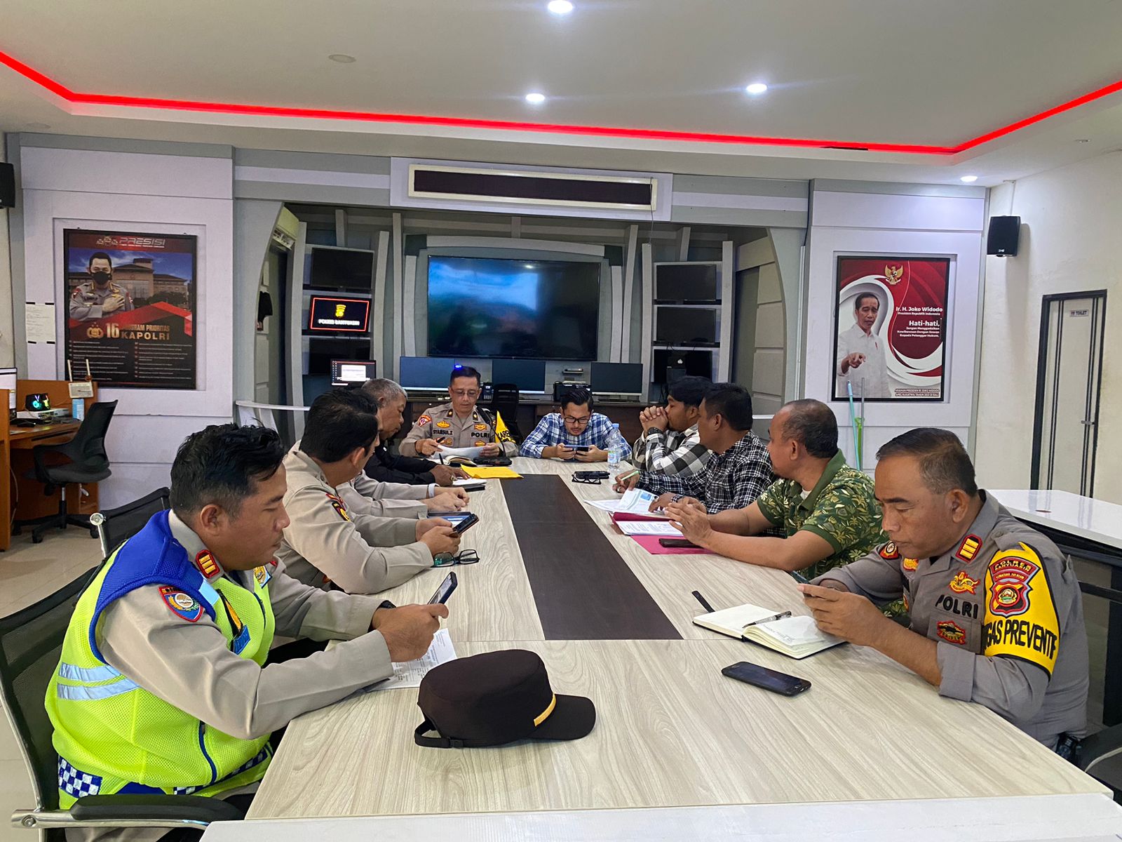 Rapat tersebut bertempat di Ruang ICC Mapolres Banyuasin, yang dipimpin oleh Kabag Ops Polres Banyuasin Kompoi Syamsul Zachri SH, dan dihadiri Kasat Reskrim AKP Teguh Prasetyo SIK, Kasat Intelkam Iptu Bagus Tabiin Sridarmojo, S. Trk.