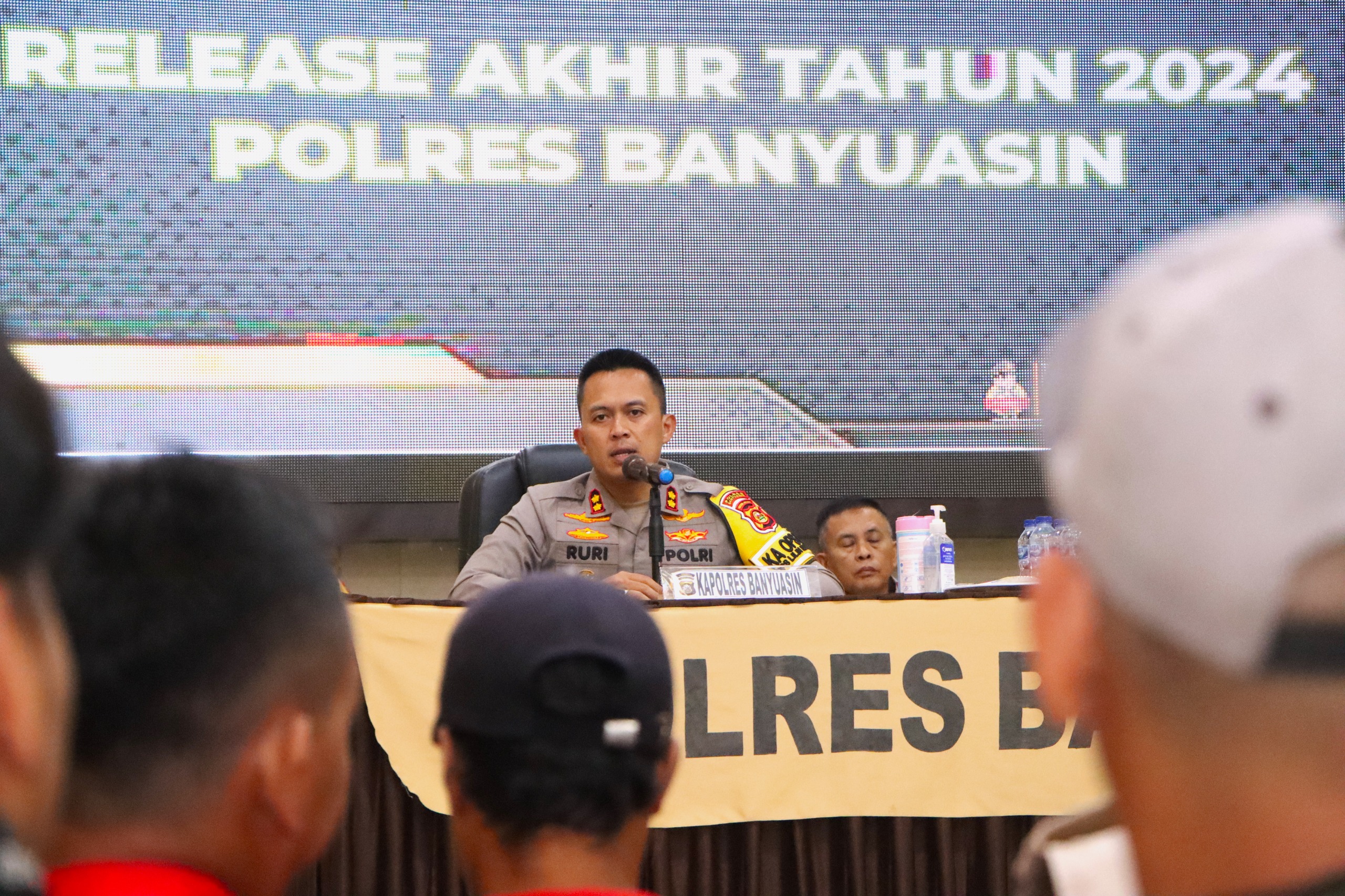 Liputanabn.com | POLRES BANYUASIN – Menjelang akhir tahun 2024, Polres Banyuasin menggelar kegiatan release akhir tahun yang dilaksanakan di Aula Sanika Satyawada Polres Banyuasin. Dalam acara tersebut, Kapolres Banyuasin AKBP Ruri Prastowo SH SIK MIK menyampaikan beberapa catatan penting terkait kinerja kepolisian selama tahun 2024 serta langkah-langkah strategis untuk tahun depan, Senin, 30 Desember 2024.