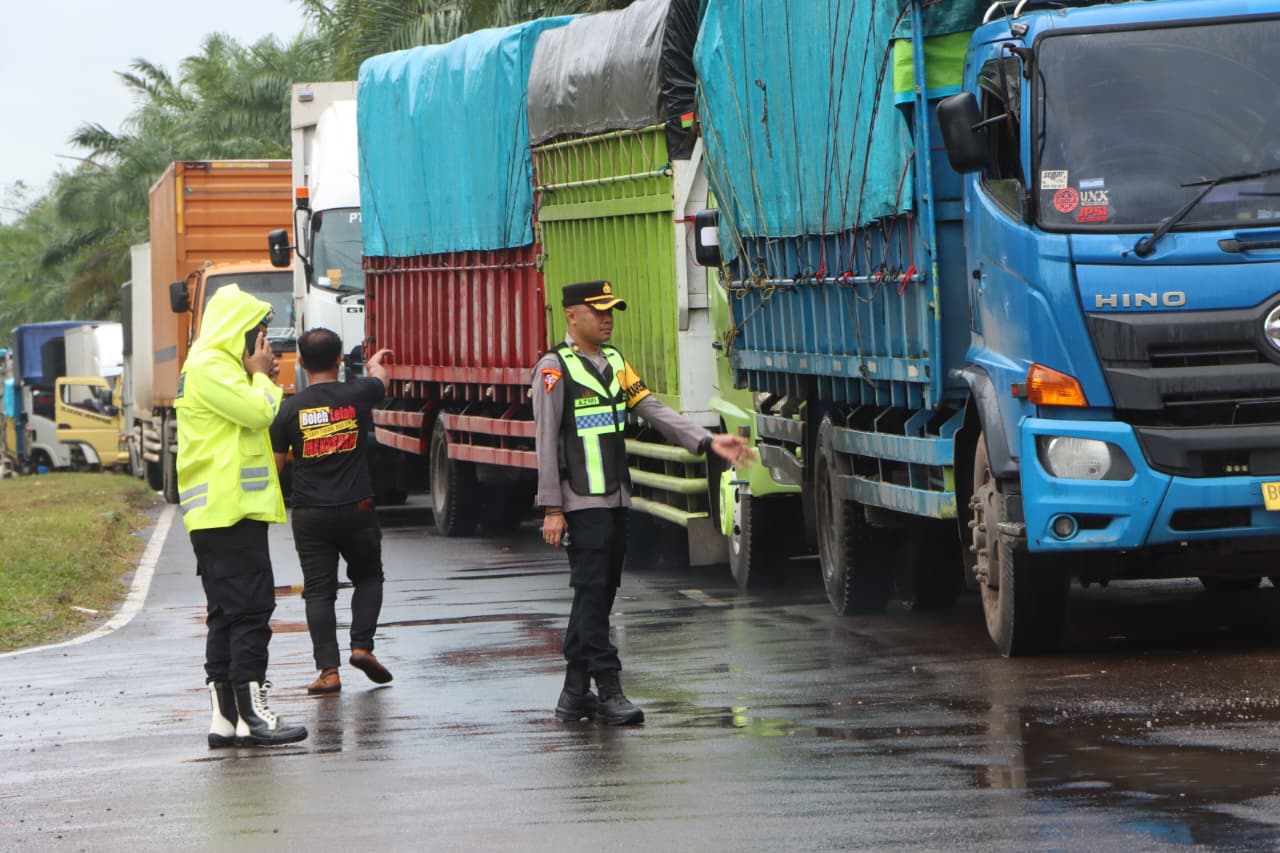 Kapolres Banyuasin AKBP Risnan Aldino, S.I.K., M.Si, melalui Kabag Ops Kompol Azmi Halim Permana, S.I.K., M.A.P., menegaskan bahwa pihaknya tidak akan memberi toleransi bagi kendaraan logistik golongan besar yang melanggar aturan pembatasan operasional selama masa mudik.