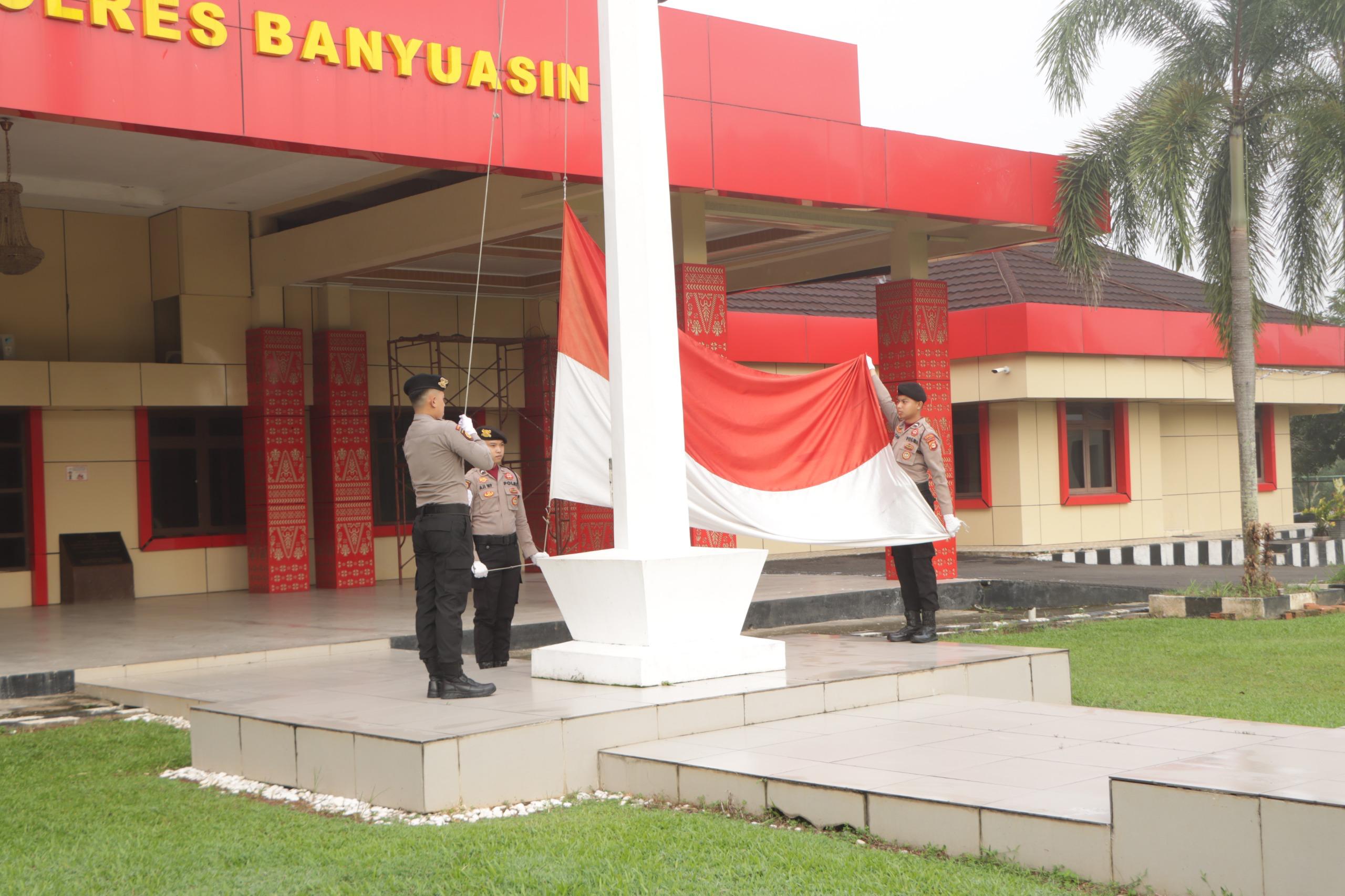Polres Banyuasin Kibarkan Merah Putih, Teguhkan Pancasila Sebagai Jiwa Bangsa di HUT ke-80