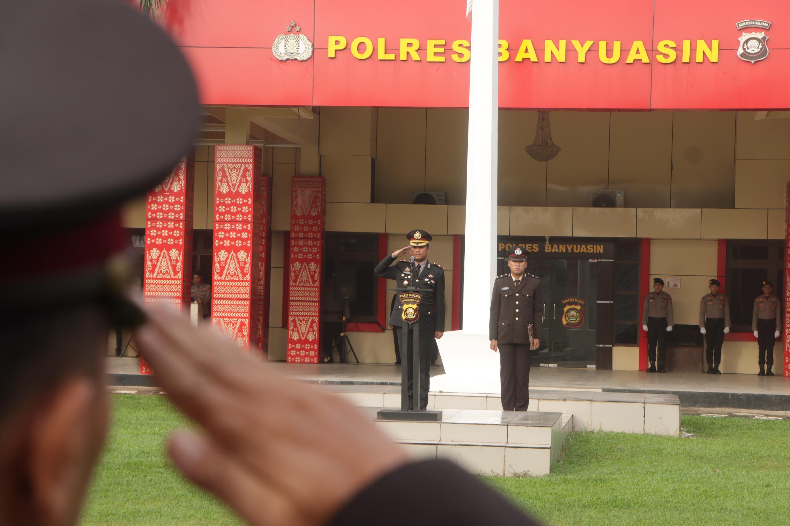 Kapolres Banyuasin, AKBP Ruri Prastowo yang diwakili Wakapolres Banyuasin Kompol Adriansyah bertindak sebagai inspektur upacara Dalam rangkaian utama kegiatan tersebut Wakapolres Banyuasin Kompol Adriansyah membacakan amanat Kepala Badan Pembinaan Ideologi Pancasila (BPIP) Republik Indonesia, Prof. Drs. K.H., Yudian Wahyudi, M.A., Ph.D.